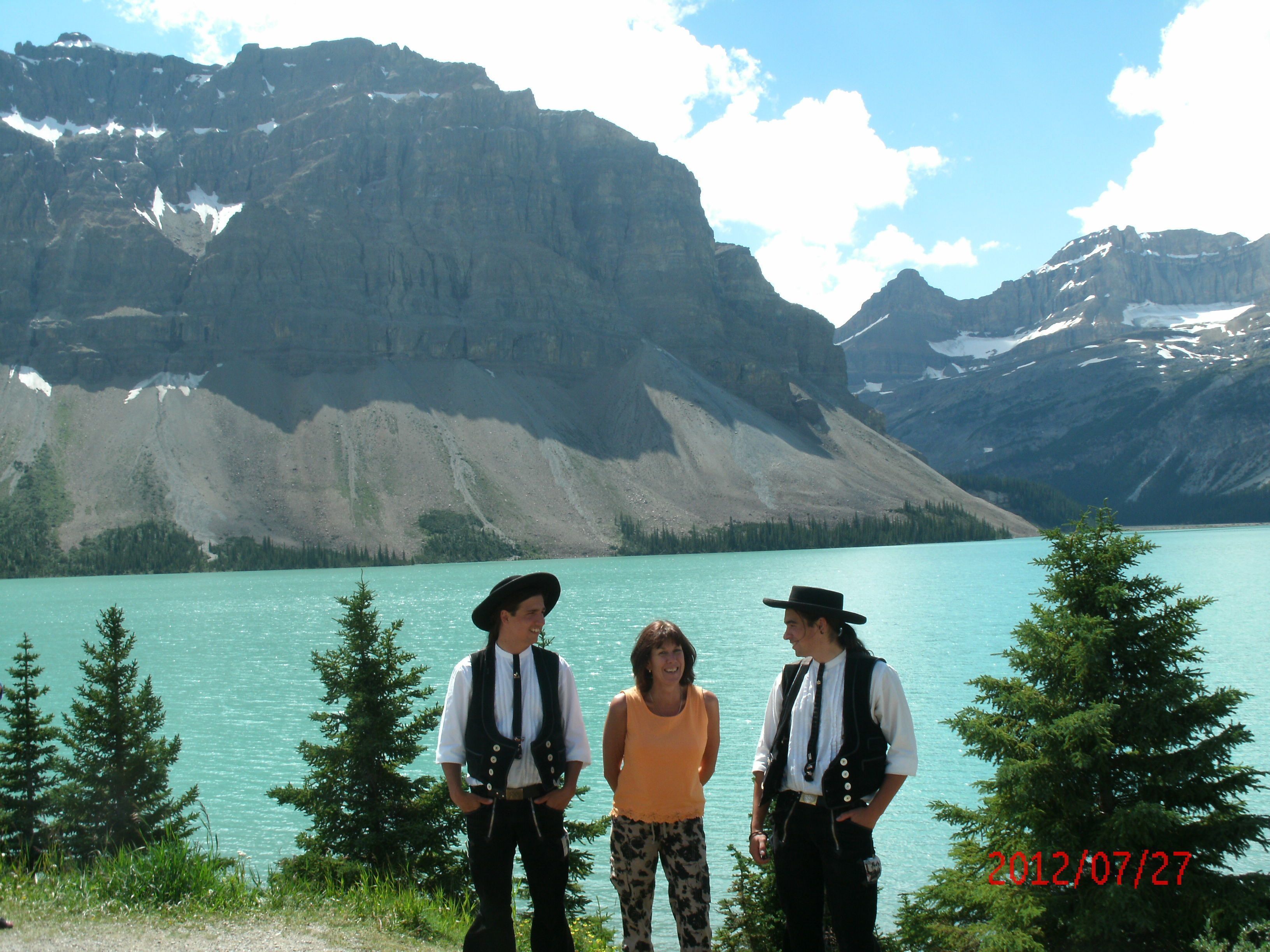 My niece & I stopped at the side of the highway at a look out and these 2 young men had stopped also. We had seen them the day before in Jasper. We asked if I could get my picture with them because they were in their costumes and we had called them the "2 amigos".