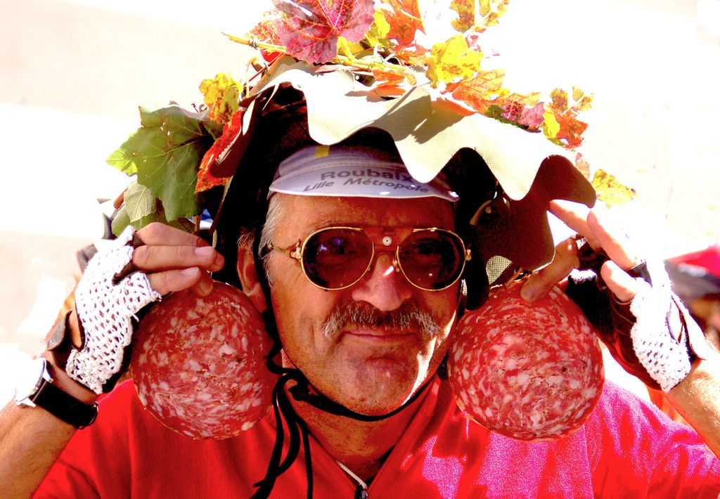 All the bikers came up the hill and stopped for a drink of Wine and slices of meat. This guy was a crazy participant who was most entertaining!