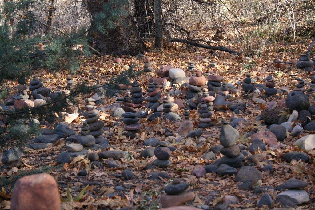 I came across this lovely scene - of many stones stacked by as many people, along a riverbank in Sedona. It made me think of this: "A rock pile ceases to be a rock pile the moment a single man contemplates it, bearing within him the image of a cathedral." -Antoine de Saint-Exupery