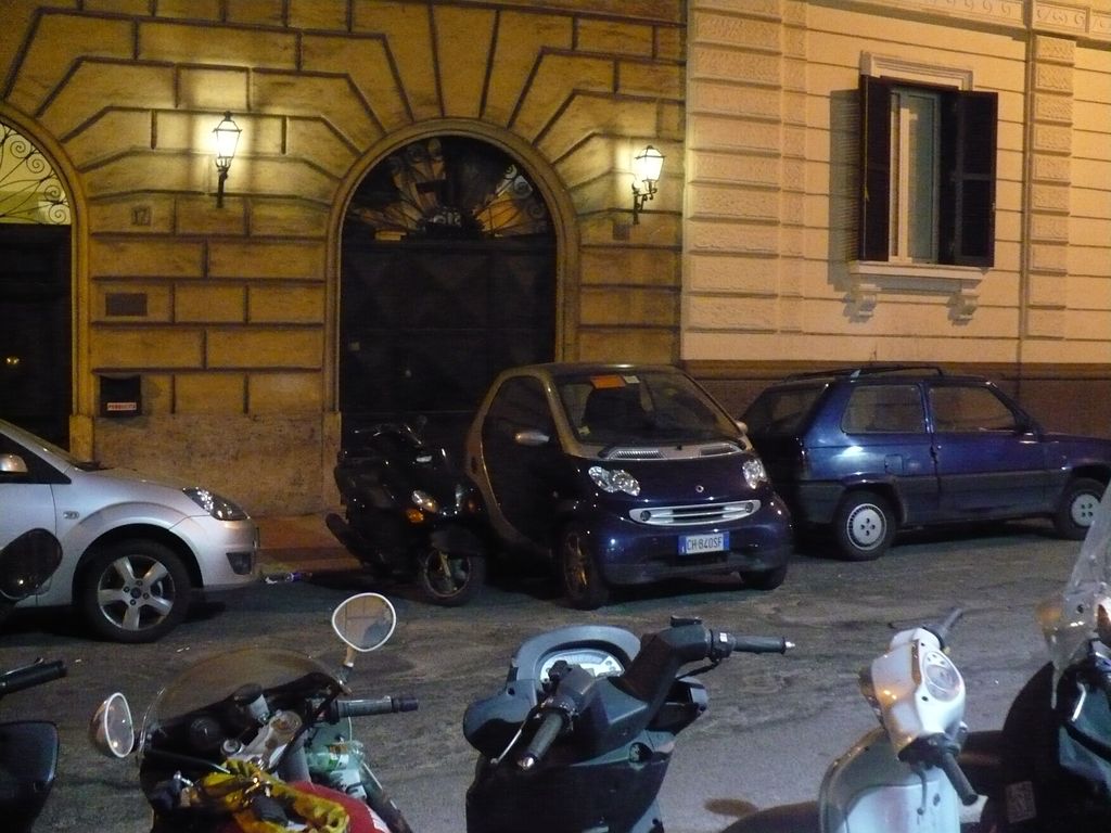 I was walking back to the hotel in Rome, down a crowded street with traffic and cars seeking parking spots everywhere - had to laugh at the sight of one VERY "smart" car!