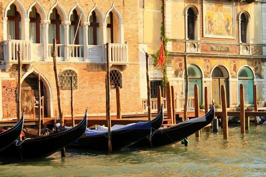 The late morning sun warms the flower adorned windows of this colorful Venetian canal.