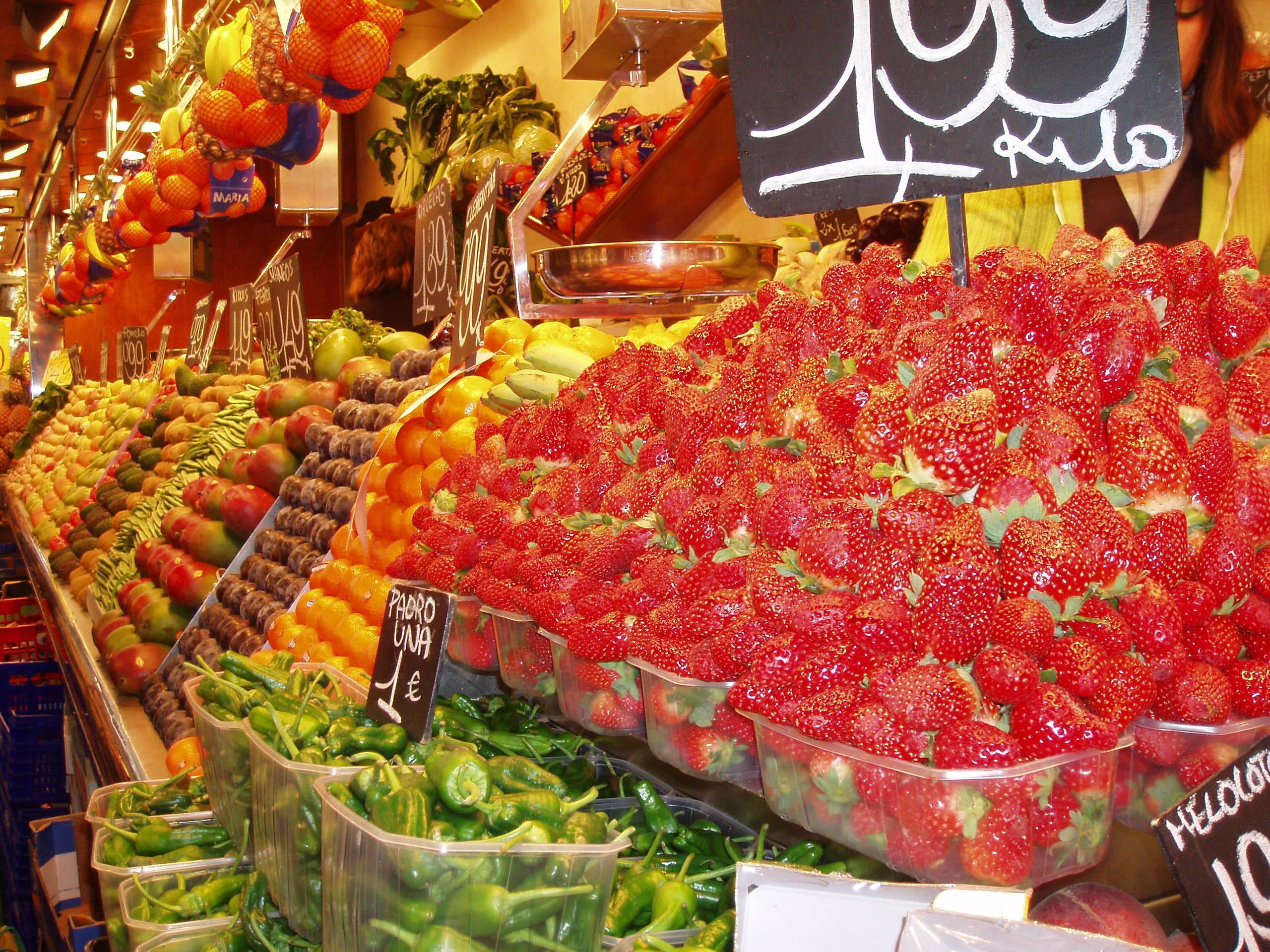 la bancarella di un fruttivendolo nel mercato de La Boqueria