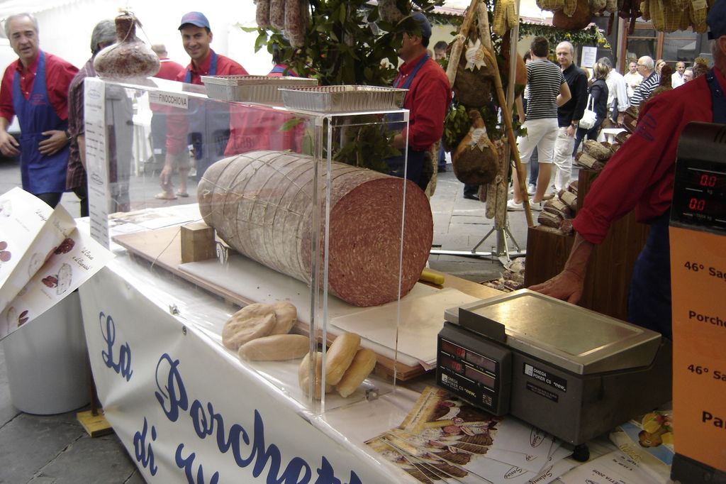 Snapped a picture of this huge salami in a local market on hilltop town in Tuscany.