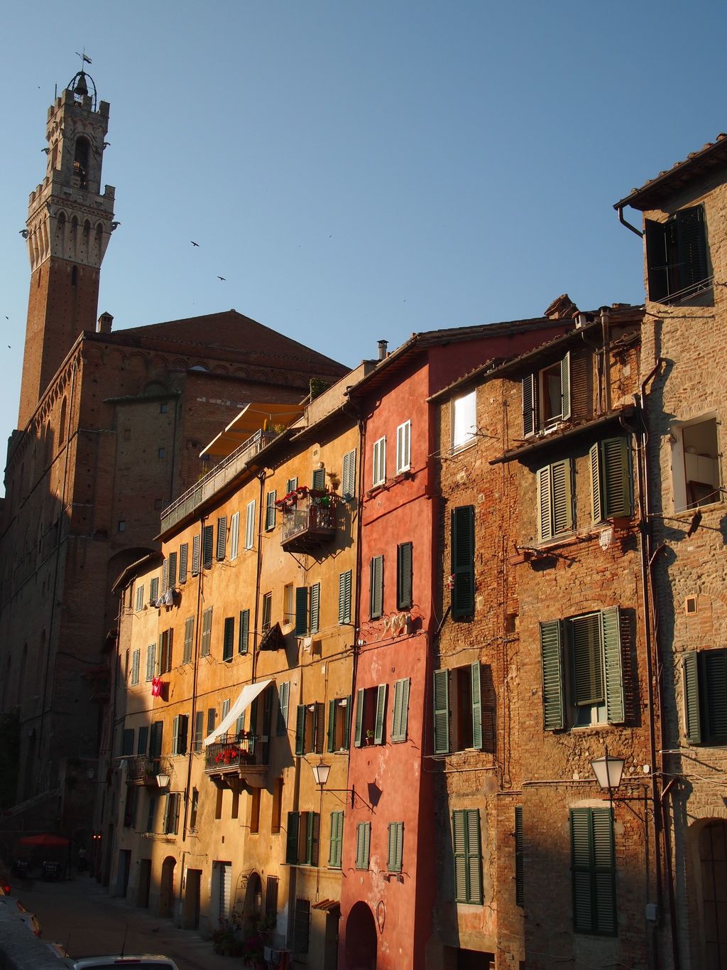 Great colors produced by the late sunlight on the colorful buildings of Siena