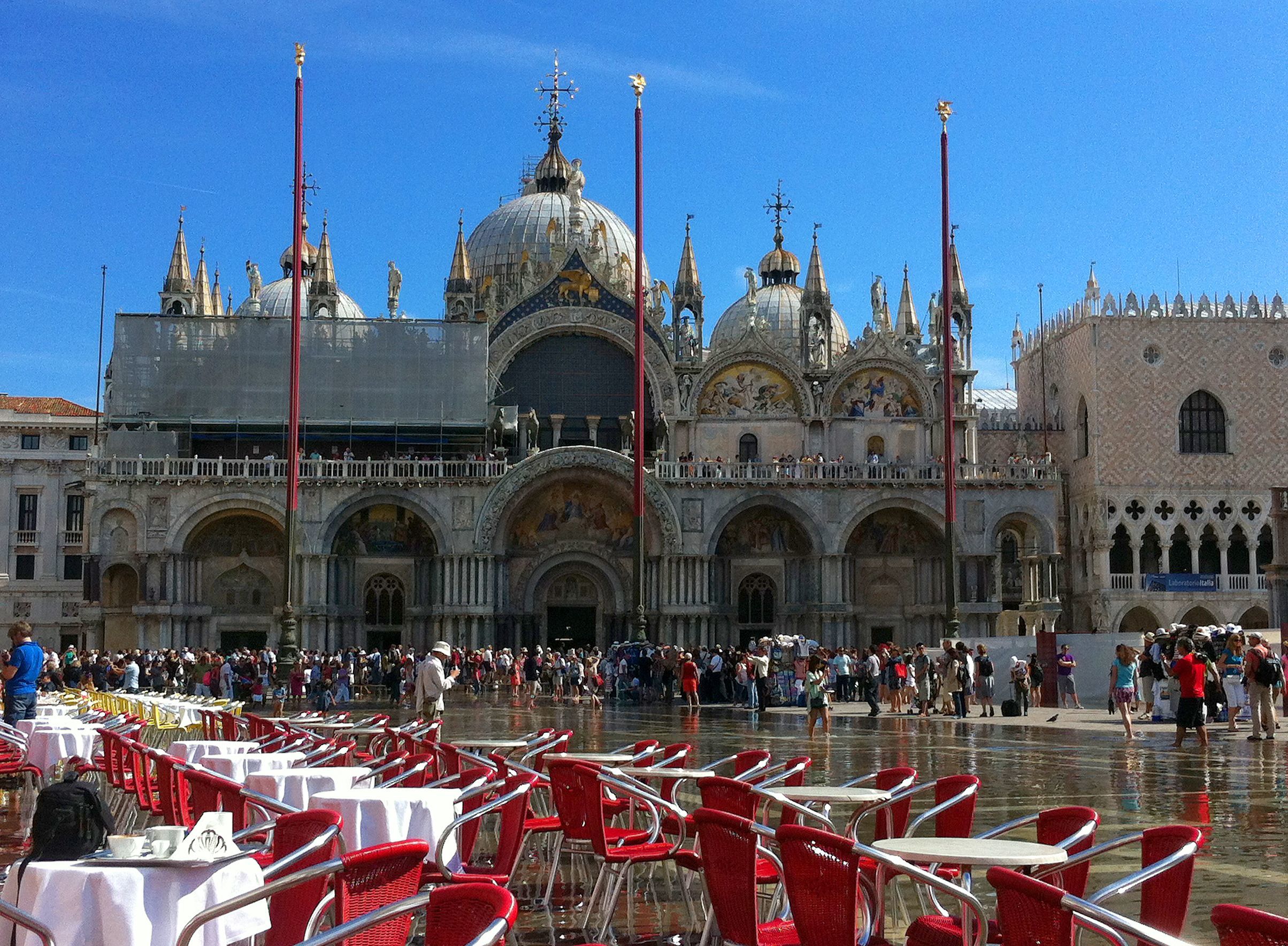 On a hot day at Piazza San Marco in Venice. The view was almost worth the price of the coffee. Taken with an iPhone 4