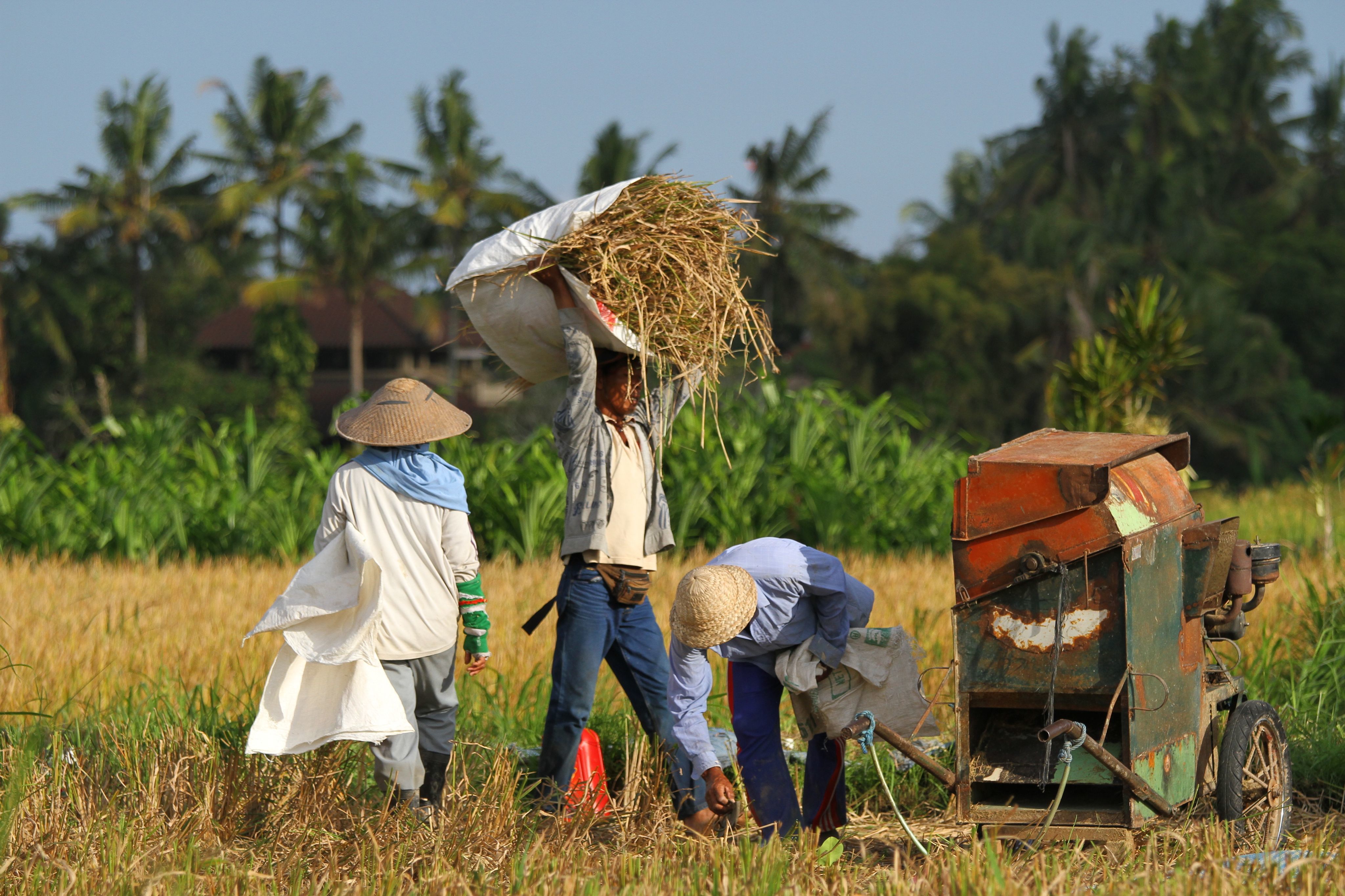 Traditional harvest of rice in Ubud - Bali (Indonesia)