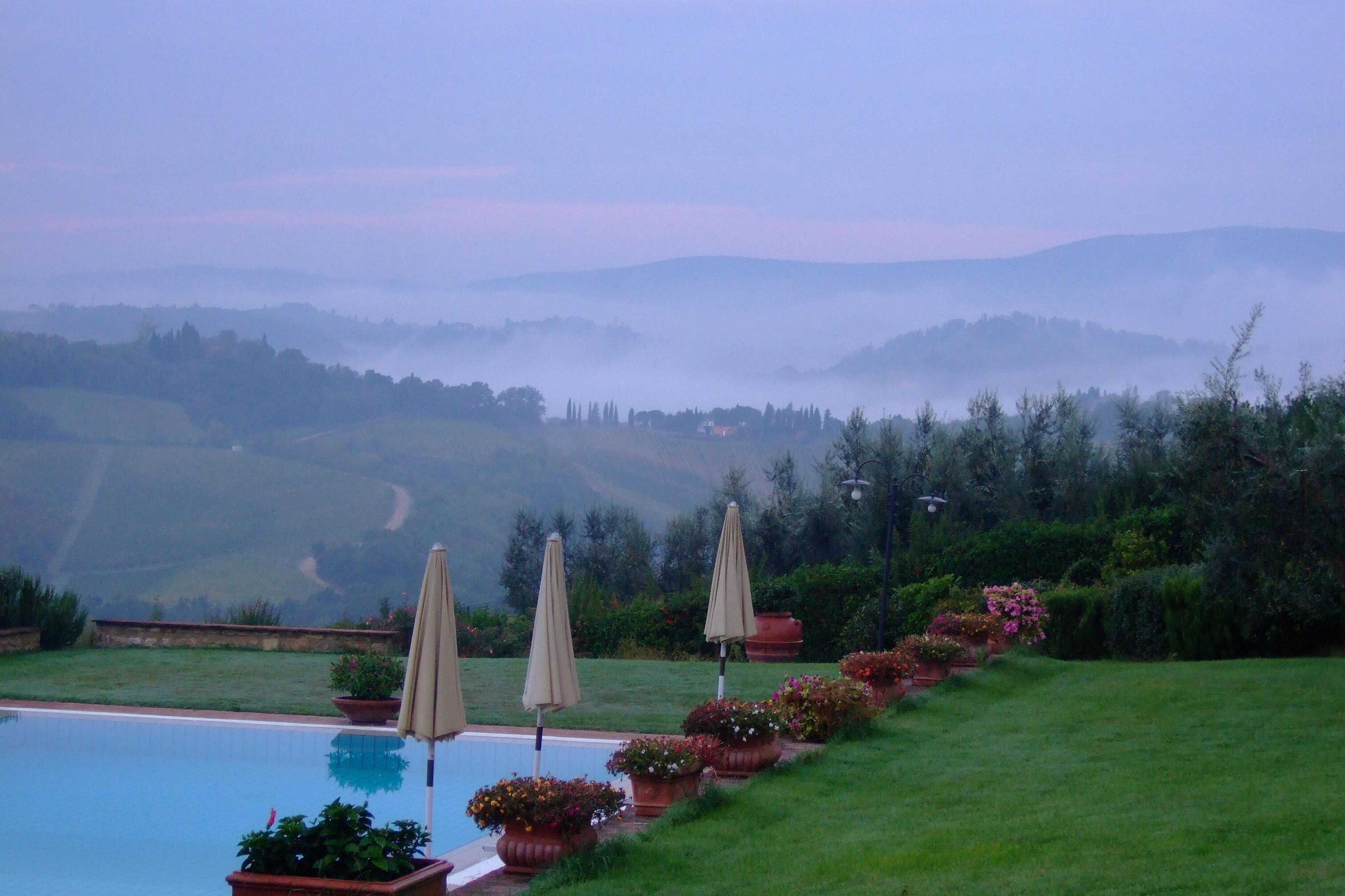 In oktober 2009 hadden we met een vriendenploeg een villa gehuurd in Toscane . Na veel zoeken kwamen we 's-avonds in het donker aan op de plek van bestemming. De volgende ochtend deden we de gordijnen open en waren we sprakeloos van dit fantastische uitzicht.