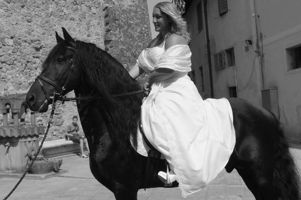My dream was in white, on a black horse, in Italy and with my father (again found) who would lead me to the altar.