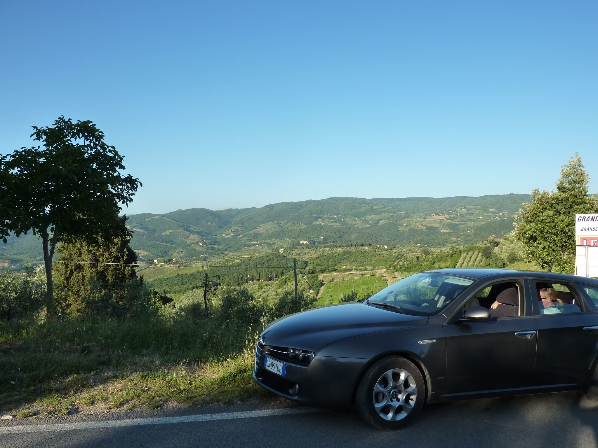 We picked up a rental car in Pisa, and despite asking for a 4wd we ended up with a very nice Alfa Romeo wagon, manual, and set off for Panzano in Chianti; we had the aid of a navigation system that apparently couldn't read Italian and despite a couple of "Griswald" moments, the roundabouts were particularly funny, we made it to the driveway of Lupinati Villa and started the 1km journey down the unmade road; I said started because we got at least a quarter of the way before the road made its indelible mark on the Alfa and scraped the bottom of the car (scraped, more like took the bottom of the engine out!) and you guessed it, red warning lights started to appear on the instrument panel. Not brave enough to continue, we emptied the car, including our luggage, I reversed slowly back up the road and decided we needed to get to the nearest mechanic before we did anymore damage; trying to read a Car manual in Italian is hard enough but after checking in with the rental car company, which turned out to be futile given they couldn't understand us and we couldn't understand them, about 20 kms later we found ourselves in Greve; we found a mechanic and just as we drove into his shop, low and behold the red lights disappeared at that very moment, like there was some sort of divine intervention! Either that or the car looked at the Italian mechanic and got cold feet!. It didn't matter, the mechanic and I gestured to each other, "it's Italian" who knows why!
