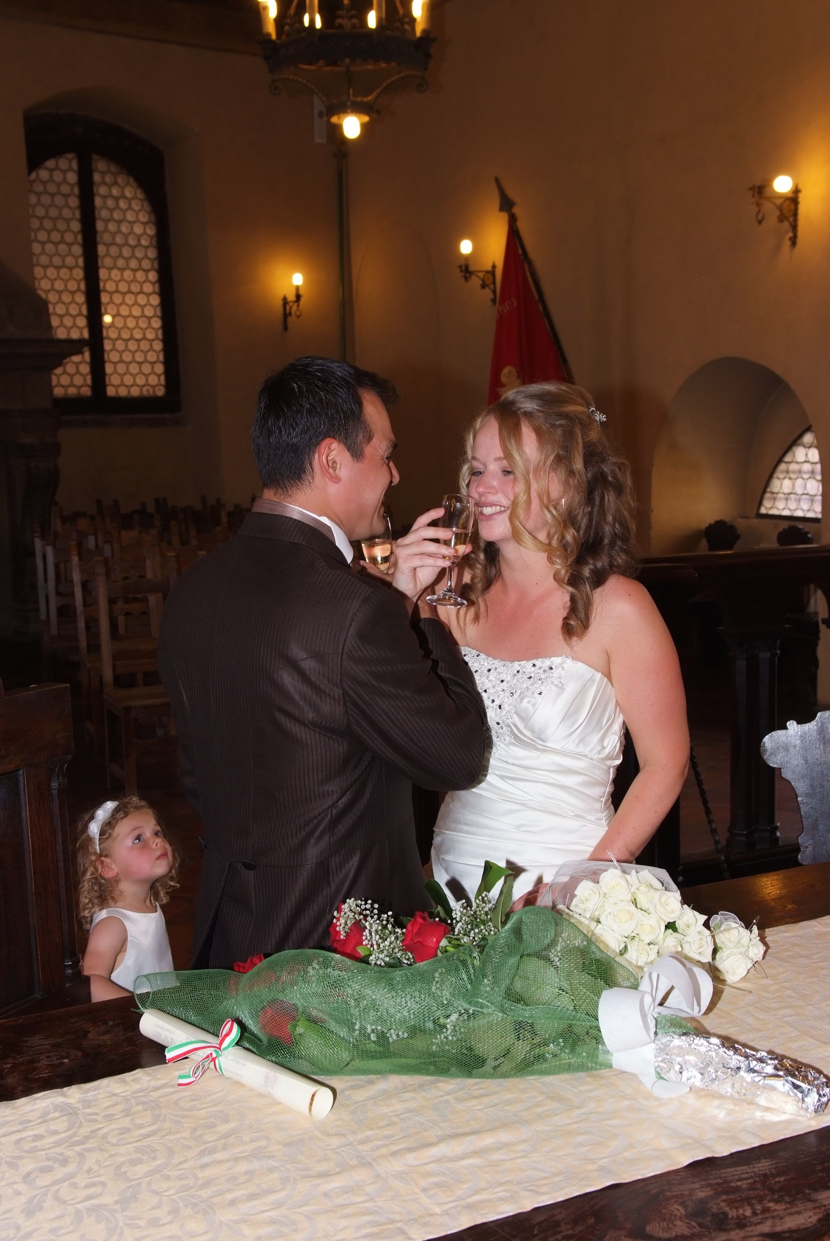It was incredibly hot and Pablo had obeyed my orders in pulling the bodice of my dress as tight as possible, which although hindered regular breathing, helped me sit bolt upright when we sat down for the service. The ceremony, conducted in Italian, was short and to the point, with a translator to assist us where necessary. Looking around, the décor and furnishings were breath-taking. Sitting on two high backed wooden thrones only added to the occasion's excitement and sense of importance.