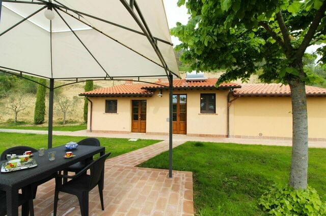This villa/bungalow is set in 750 hectares of vines producing Montepulcino vin noble. The swimming pool and hot tub are great and it is weel equiped apart from of you want comfy sitting in the villa as there is only two beds and a sining table with hard chairs. It has air conditioning in each room which is a very expensive extra when it is bery hot which is most of the time. The villa is reached by a farm track so good tyres on your car are a must.