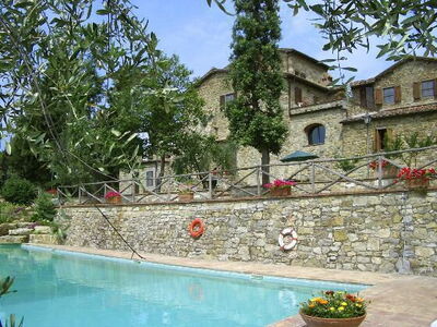 Remarkable villa, the core of which dates back to 400AD. Lovely views of Tuscan countryside: vineyards, olive groves, scattered villas & rolling hills. Large & very charming rooms; great blend of ancient & modern. Large pool & wonderful outdoor spaces. Easy car or bike access to Panzano.
