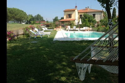 A charming, spacious, rustic property set in lovely grounds within a large estate. The villa has its own private garden and good swimming pool. A large well-stocked supermarket is only 10 minutes drive away and it is within easy reach of Pisa, Livorno, Lucca and Florence as well as Lajatico for Andrea Bocelli's home town concert. But do get detailed instructions to get to the villa!