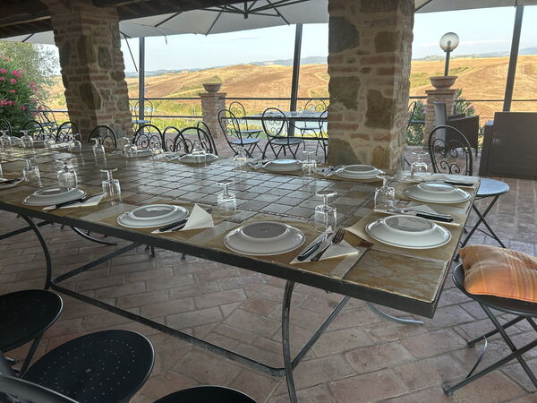 Très bon 4 /5 Qualité de la propriété: 4 /5 Propreté du logement: 4 /5 Situation du logement: 5 /5 Cuisine: 3 /5 Chambres à Coucher: 5 /5 Bains: 2 /5 Proche par Région: 1 /5 Propriétaire: 5 /5 The appartment in the mainhouse was charming. The shower very poor. The come togethers with good good, house wine were cheerfull. The dirt road (3km) to get there terrible. Conseilleriez-vous ce logement à un ami? Oui