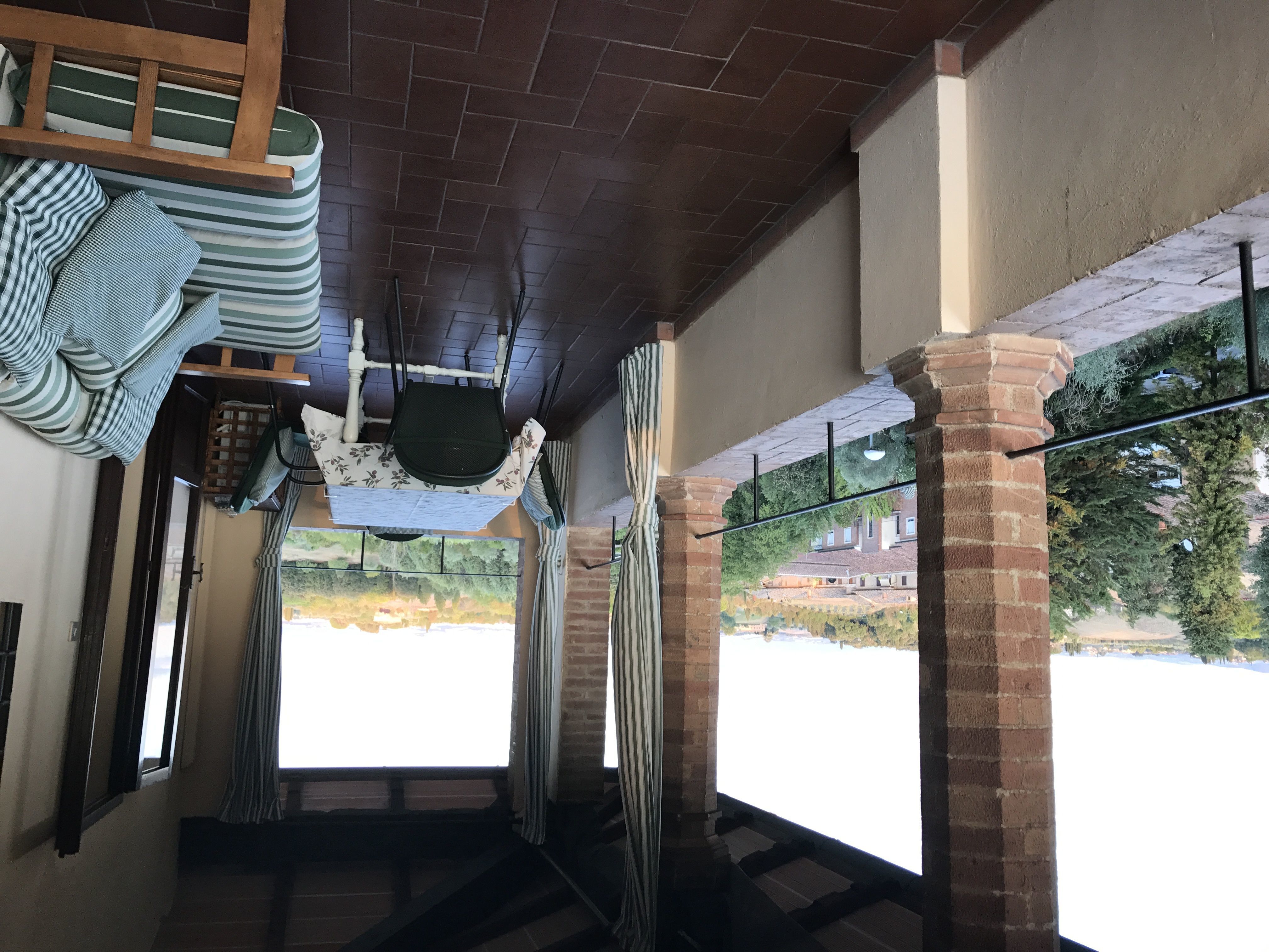 [English translation courtesy of Easy Reserve] Nice place near Siena. Large apartment on the 2nd floor with a lot of amenities and a loggia with stunning views over Tuscan hills on the one side and the beautiful garden on the other. The decor is stylish, with antique furniture to even a linen teatowel and apron. Everything was very well prepared by the hospitable and sympathetic owner. Small supermarket and bus to Siena (10 min) around the corner. Olive oil of own soil. Overall very nice place we would love to come back.