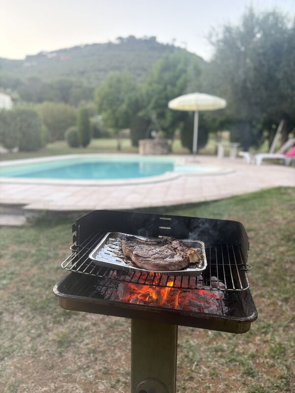 Perfectie locatie in alle opzichten. Uitgestrekt landgoed tot onze beschikking, waar iedereen kon doen wat hij wilde. Eigen zwembad, eigen bos om in te wandelen, eigen tennisbaan. Grote houtoven om zelf pizza's te maken. De tafels zijn voorzien van marmer platen zodat je zelf je pizza's kunt uitrollen. Uitermate ruim opgezette ruimte waar grote groep mensen samen vakantie kunnen houden. Winkels niet verder van het complex.