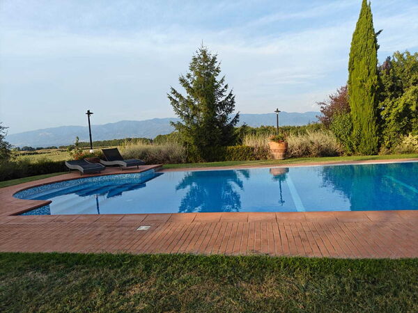 This is a beautiful villa with a lovely garden and great swimming pool. All rooms hve air conditioning which was great because we were there during a heat wave. There are several places, in and out of the sun, for eating s well as barbecue and pizz oven. The rooms re spacious, nicely furnished and very clean. The villa is a2 minut drive from the village where you can find a good supermarket (Conad), a really good gelato shop (Mondo) and plenty of architecture in the old part of Castillion. Trains run from the Village to Arrezzo , and Corton is a 15 minute drive and well worth visiting. Carlotta, the owner, was brilliant and relly helpful. Her family make a relly good red wine plus olive oil both of which we bought to take home. I tried to upload more photos but it wouldn't let me even though they were of the right size. Pity, but the place was perfect for us