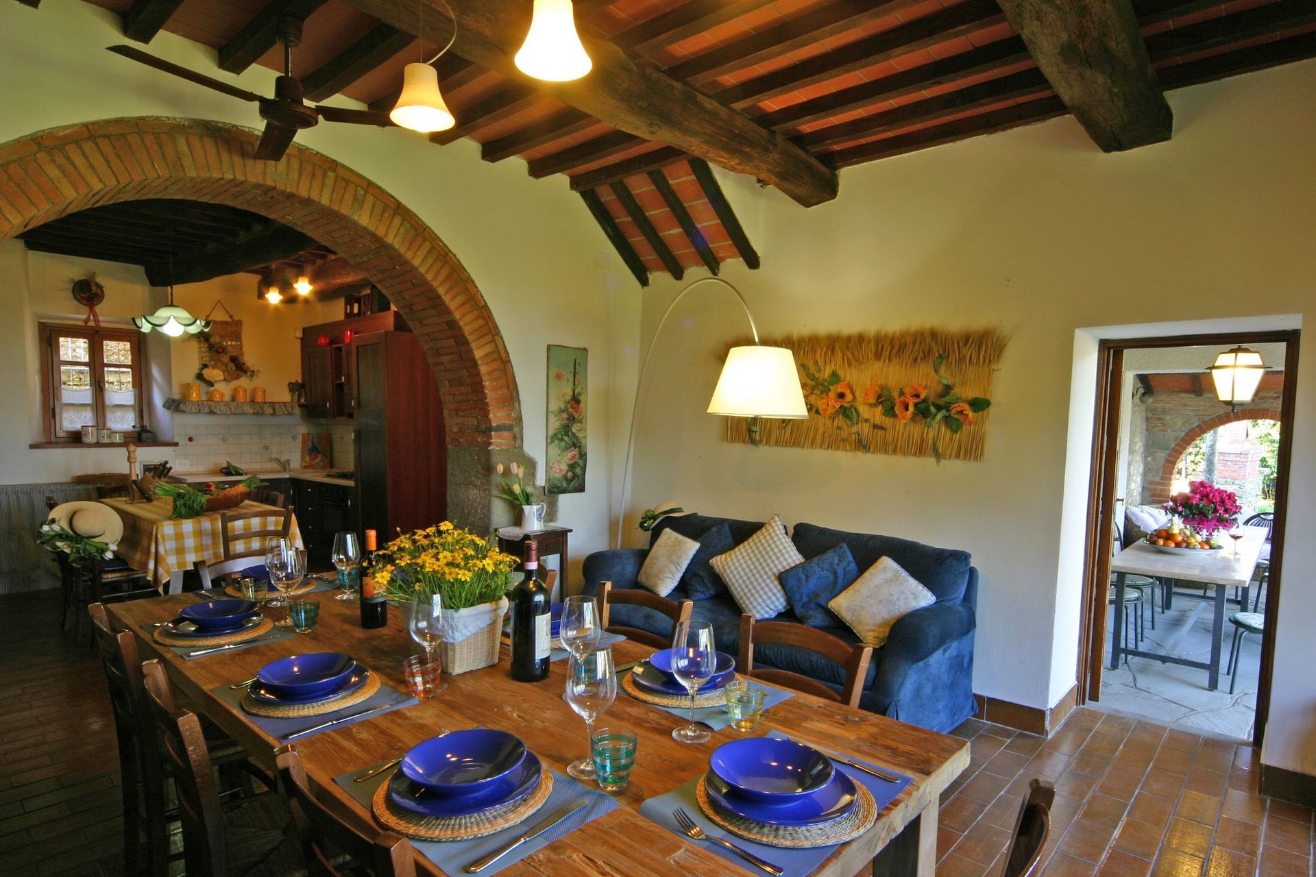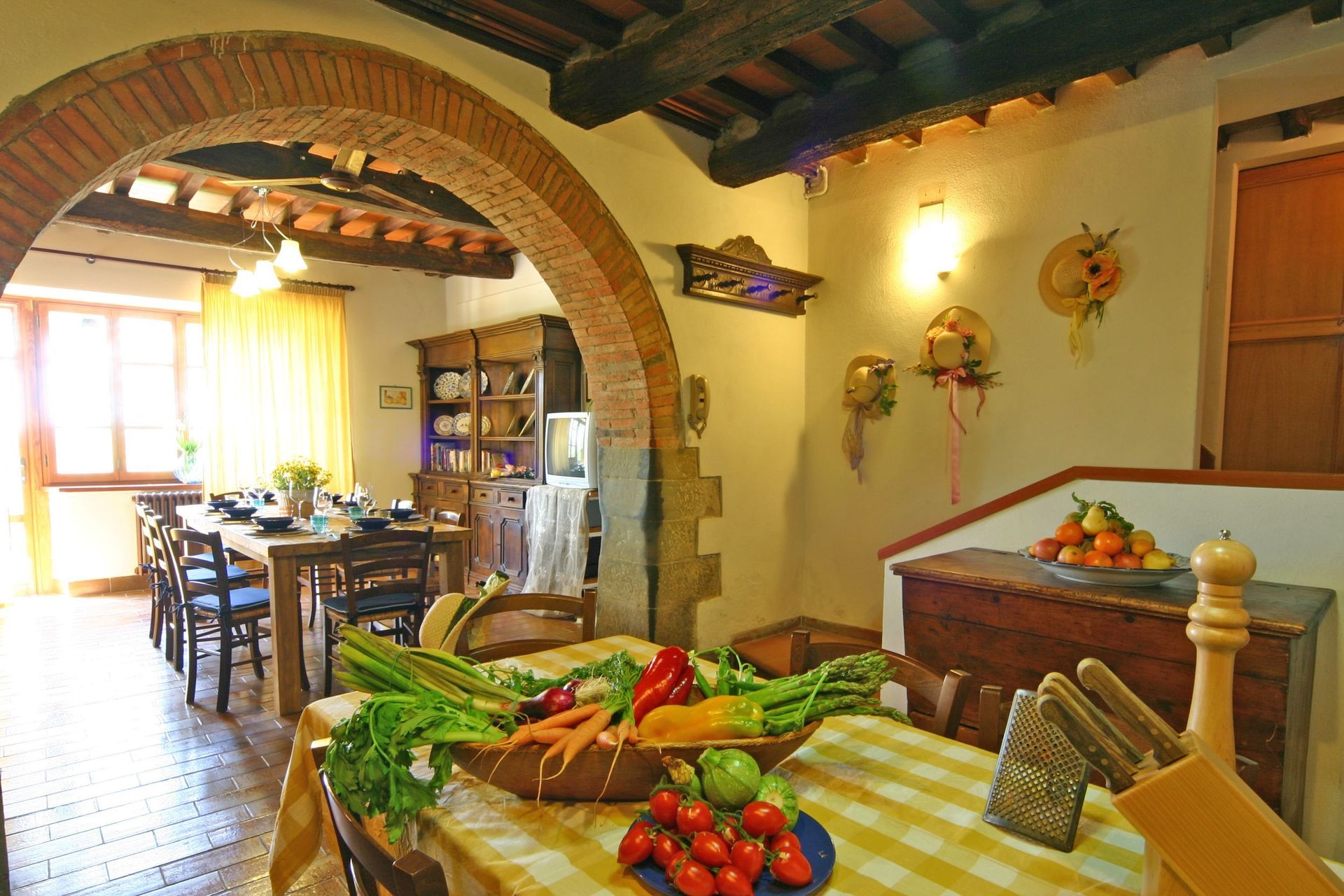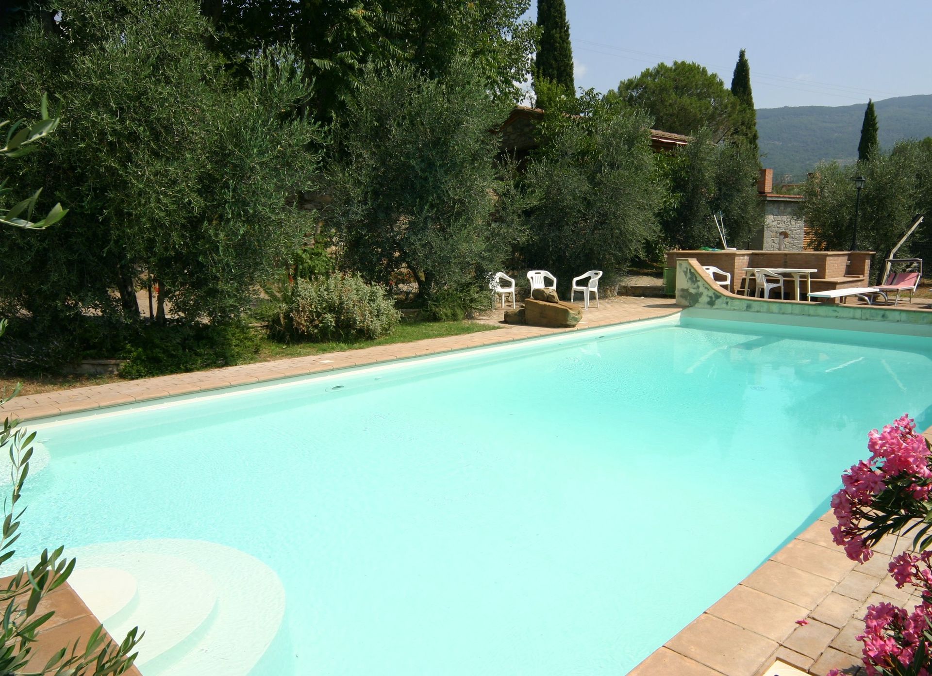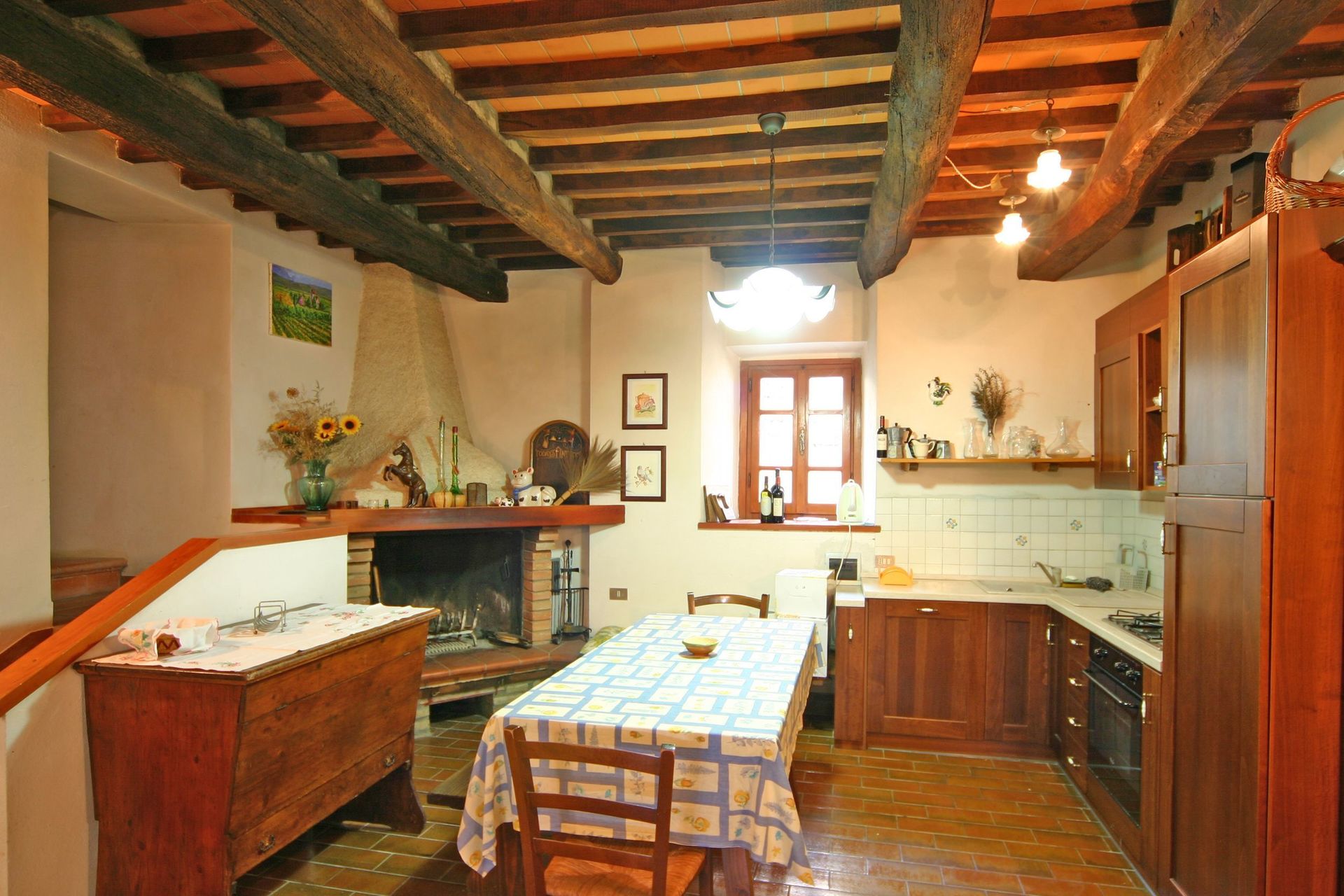 Une fois arrivés vous serez accueillis par le propriétaire, ou une personne de sa confiance, et vous trouverez une jolie propriété, propre et bien entretenue, idéale pour des vacances tranquilles en Toscane. Peu importe comment vous passez vos journées... shopping, visites, visites de musées ou tout simplement en vous baladant à la campagne, quand vous arrivez à la maison, vous pouvez vous détendre à la piscine avec votre famille et vos amis et conclure au mieux un autre jour de vacances en Toscane. Il est très pratique de disposer d'une machine à laver sur place disponible pour vos exigences de buanderie. Aussi disponibles dehors sont un patio et un barbecue. Manger avec les amis et la famille est une grande partie de la culture toscane. Profitez de la cuisine pour préparer les repas avec des produits locaux pendant vos vacances. La cuisine comprend machine à café, four micro-onde, cuisinière et réfrigérateur, ainsi que, abondance de vaisselle et couverts pour un maximum de dix personnes.