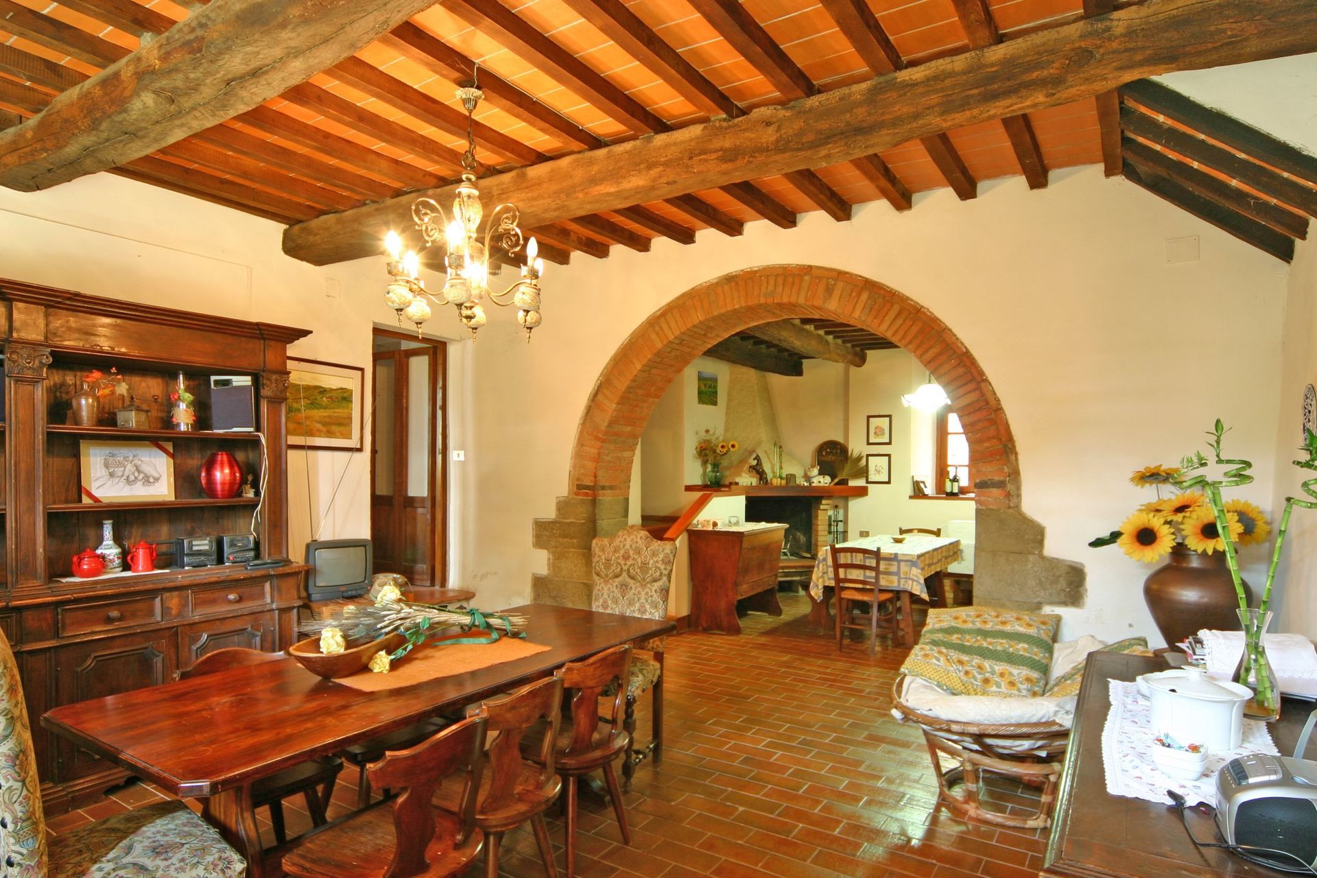 La plupart des gens aiment visiter les villes et les villages à proximité pendant les vacances, donc pour votre référence vous trouvez ici est une liste des lieux populaires avec les distances en voiture depuis la propriété:Cortone 5 km, Arezzo 25 km, Montepulciano 33 km, Pérouse 59 km et Montalcino 67 km. L'autoroute se trouve à seulement 15 km de la maison et il y a une gare à 3 km.
