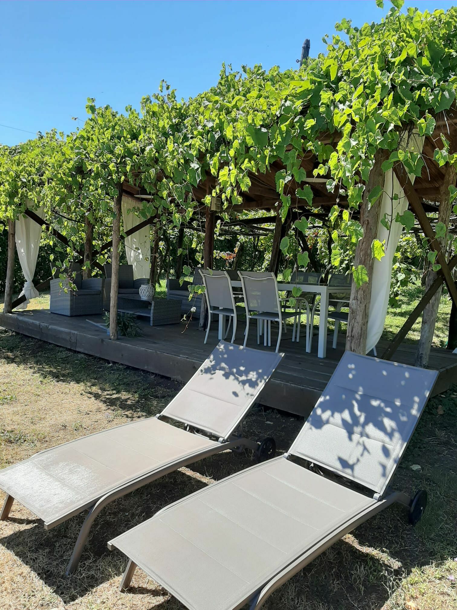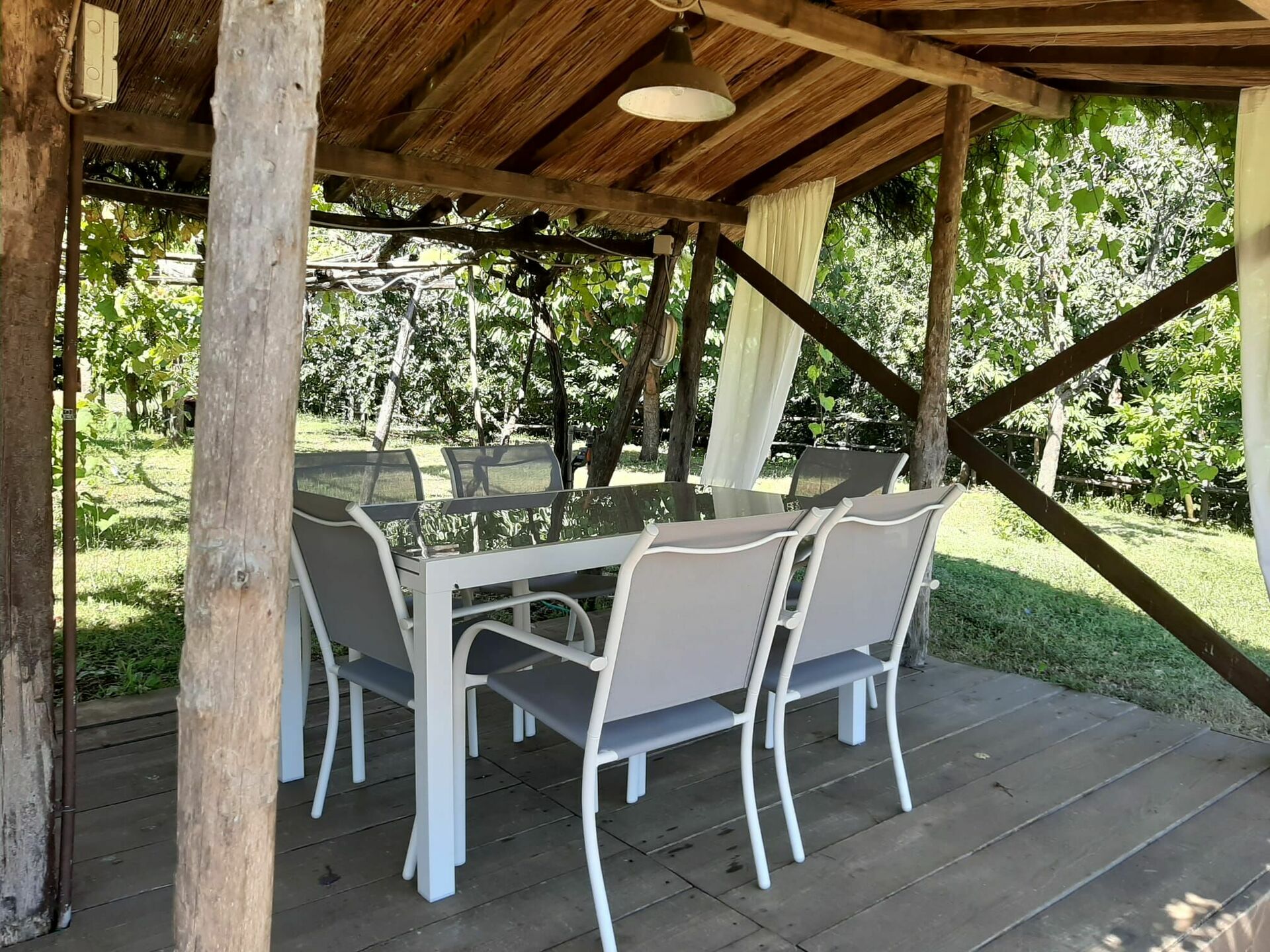 véranda: espace extérieur pour les repas en plein air, table à manger, internet WIFI, meuble de jardin.
