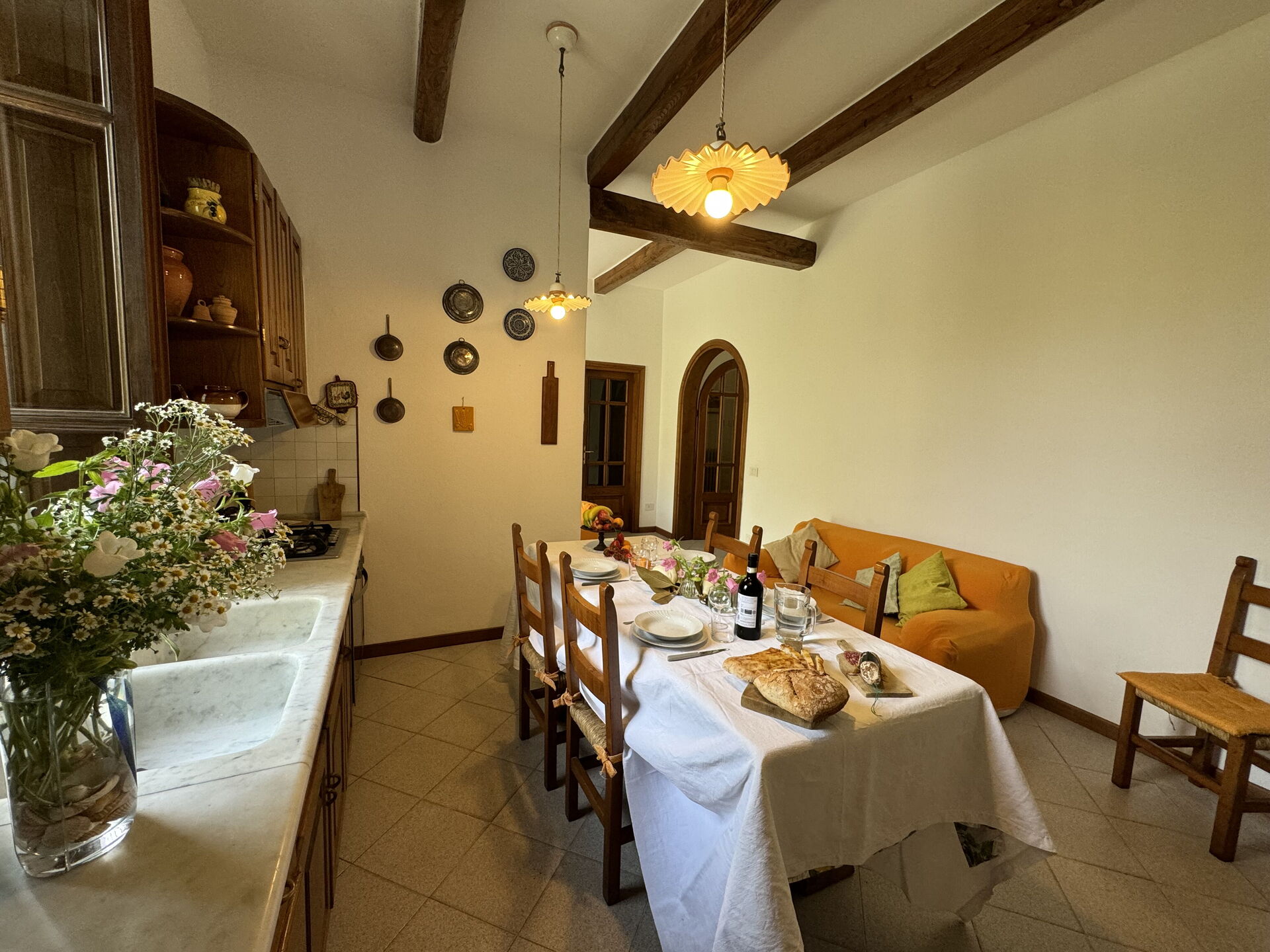 à votre arrivée à Casa Romana vous trouverez une jolie propriété, propre et bien entretenue, parfaite pour des vacances paisibles en Toscane. Après une active journée de shopping, passez du temps avec la famille et les amis en dégustant un verre de vin, un moyen idéal pour vous détendre à la fin de la journée. Aussi disponibles en plein air sont un patio et un barbecue. Manger avec les amis et la famille est une importante partie de la culture toscane. Profitez de la cuisine pour préparer les repas avec des produits locaux pendant vos vacances. La cuisine comprend machine à café et réfrigérateur, ainsi que, abondance de vaisselle et couverts pour un maximum de huit personnes. Dînez «al fresco» comme un vrai toscan, la véranda complètement équipée est le cadre idéal pour apprécier la cuisine, s'amuser en famille, et profiter du jolie beau temps toscan.