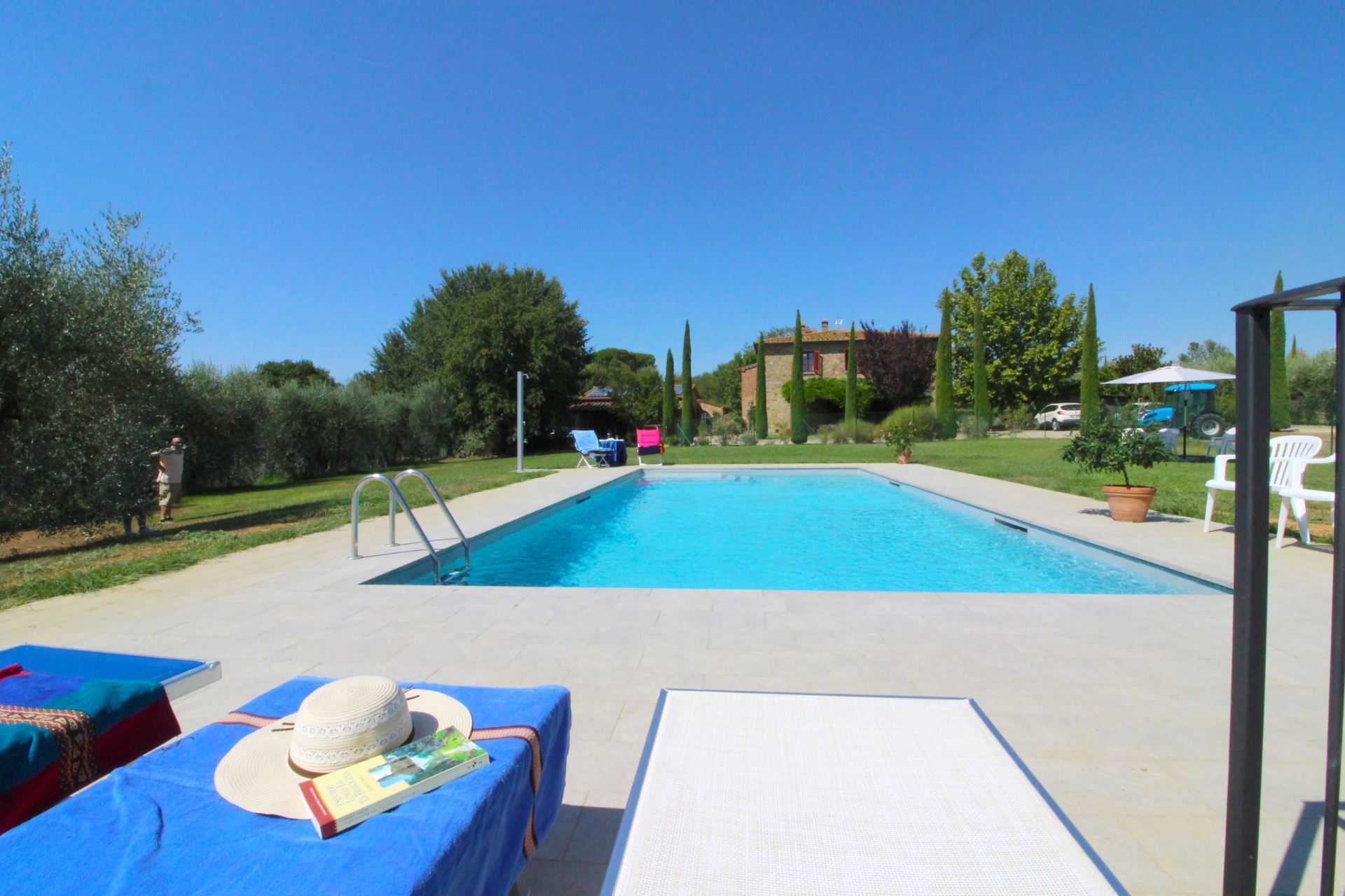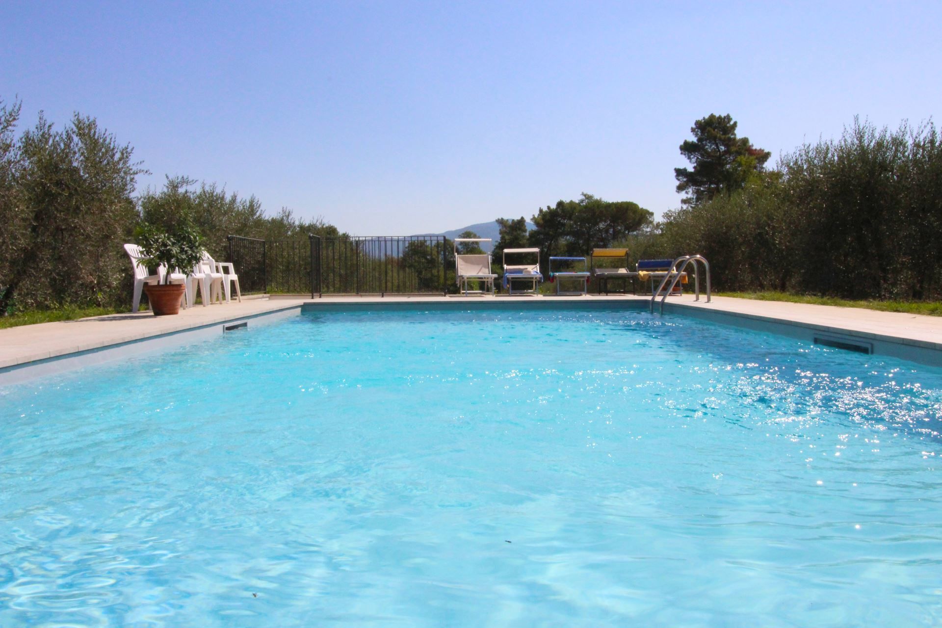 A quelques mètres de la maison, entourée d'oliviers argentés, vous trouverez une belle piscine entièrement clôturée à votre usage exclusif (dimensions 11x5 m, profondeur 1,10-1,40 m - ouvert du 01 Mai au 30 Septembre), ainsi qu'un kiosque équipé de mobilier de jardin , qui vous permettra de vous abriter du chaud soleil d'été.