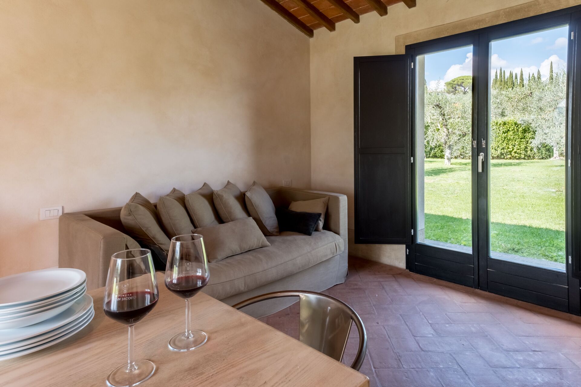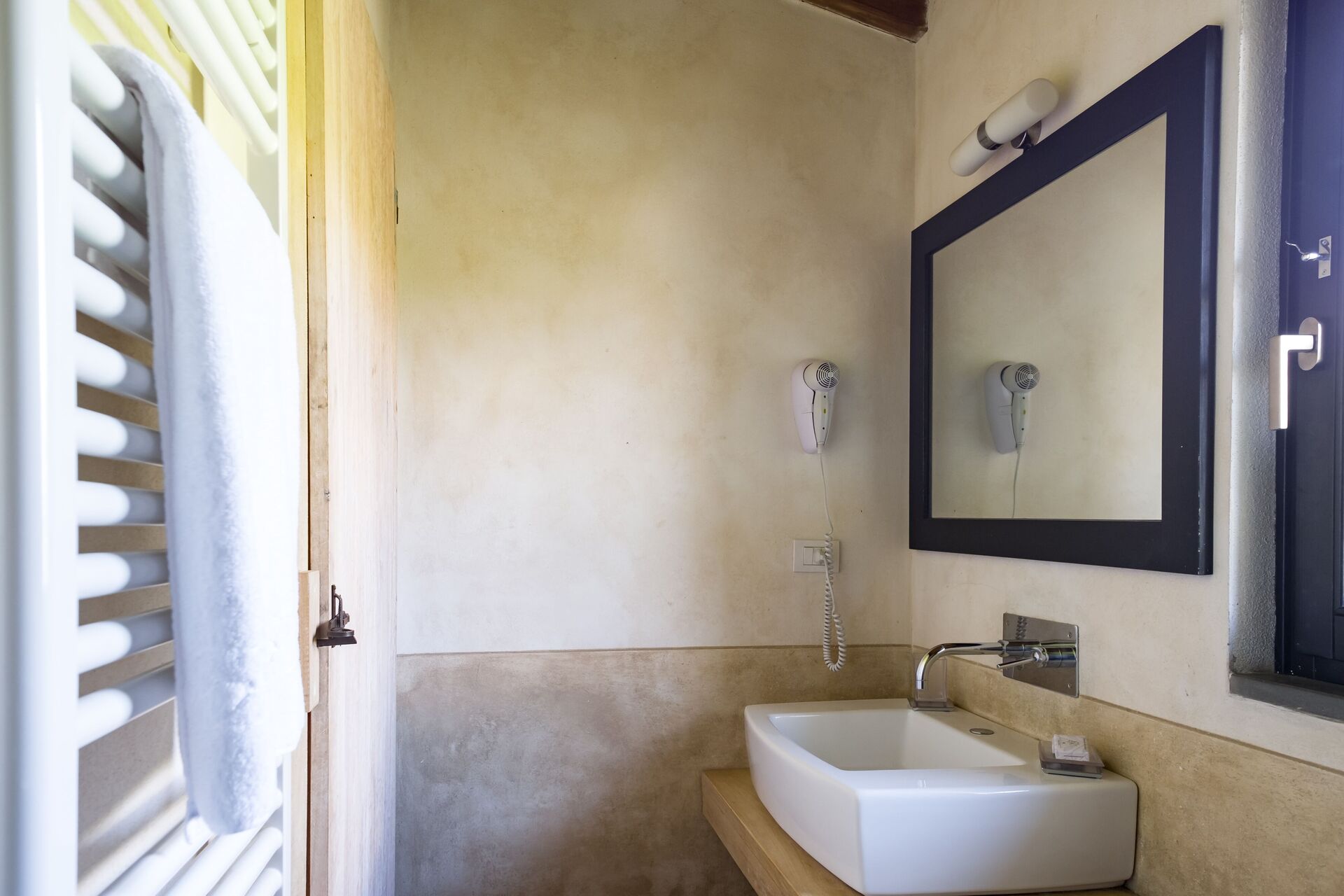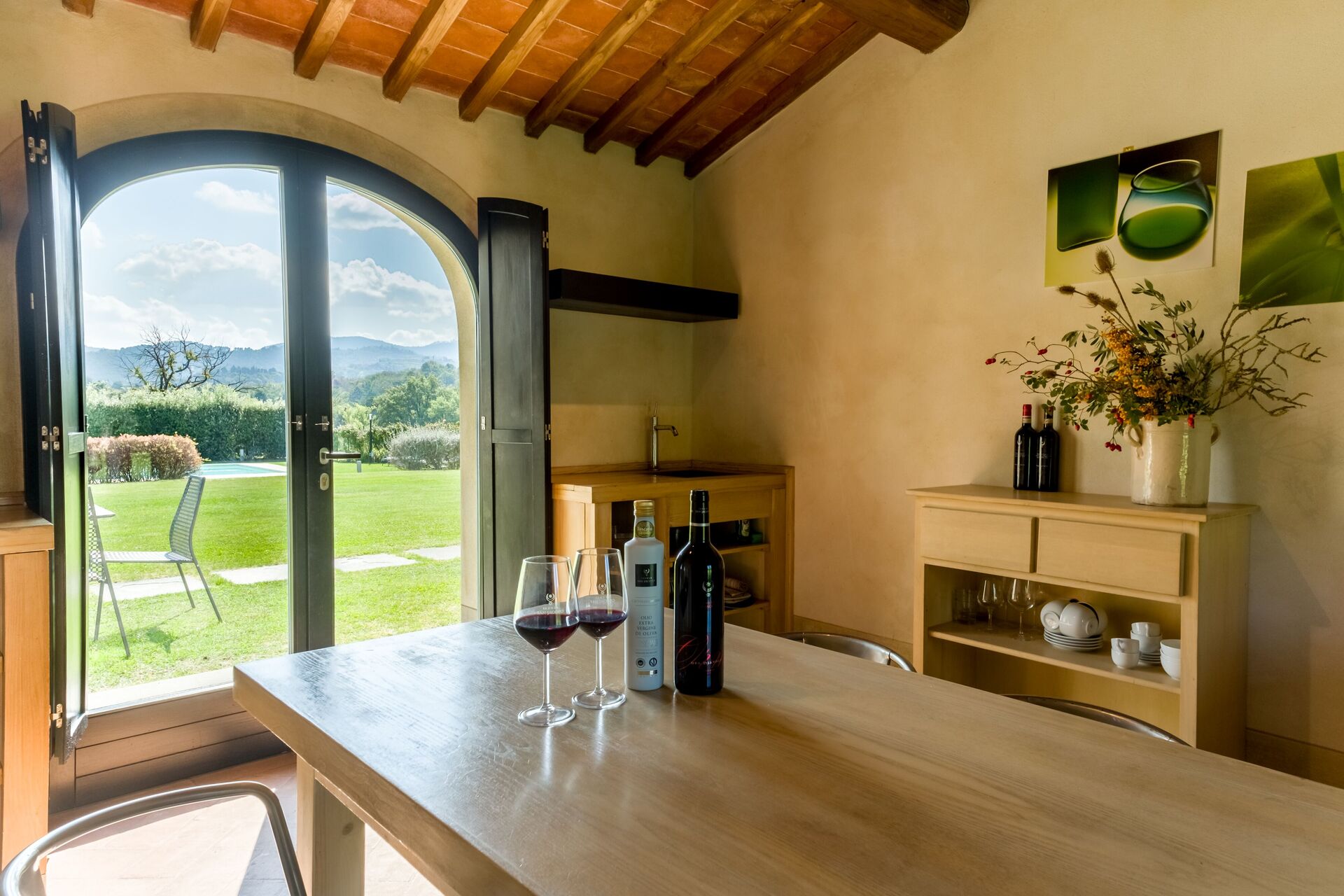 The agriturismo is not the main business of this family, and it shows well. At the arrival the office was very messy and disorganized and the and the welcome was without enthusiasm. The property has little atmosphere of what you may expect from a agriturismo. Inside everything was clean and looked simple but well at first sight. But no woman's hand was involved white the interior design. The quality of the bed was really poor, in fact below acceptable level. It was wobbling in al directions and had no stability what so ever. Several lights where not or only partly working (light bulbs were broken), and in the shower it self no light at all was working. Simple cleaning stuff in the kitchen like dish towels and a dishwashing brush or sponge were not present. For the remote control of the airconditioning unit we had to pay additionally € 10,- per day. What was there though were 6 bottles of wine from the winery with a price list...