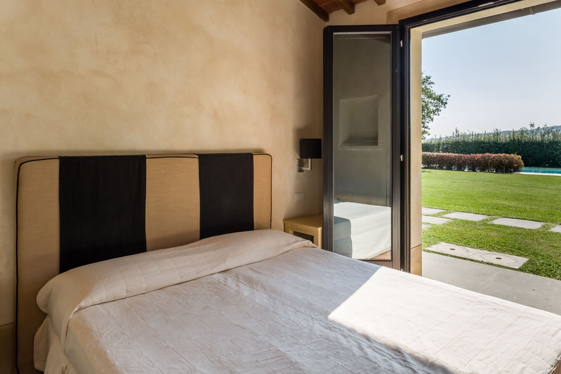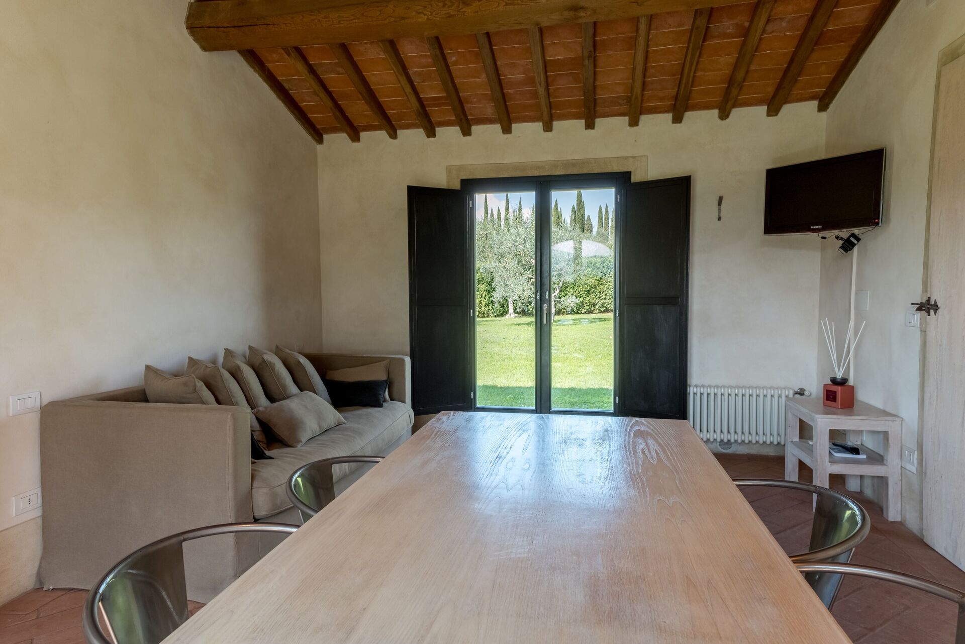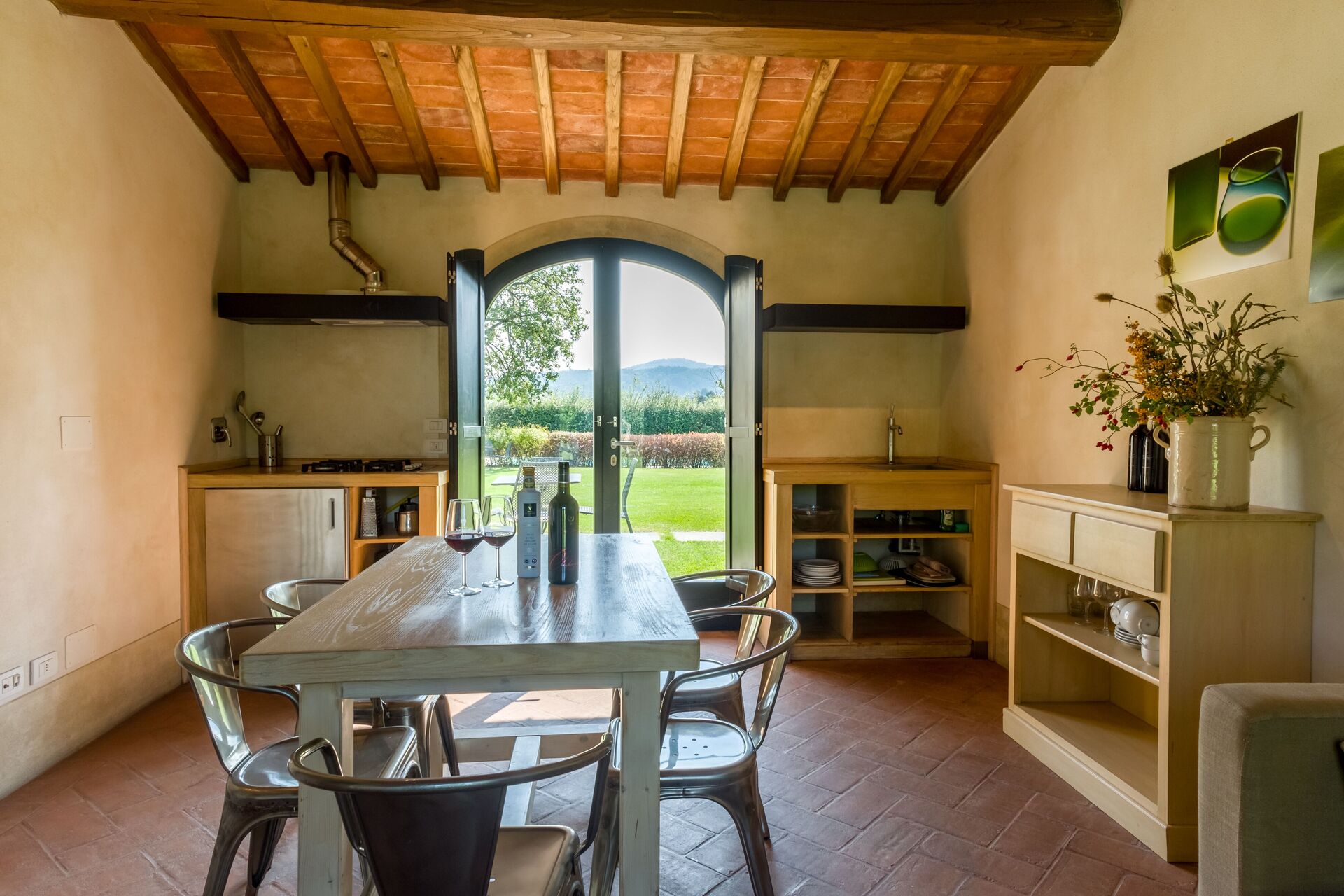 The agriturismo is not the main business of this family, and it shows well. At the arrival the office was very messy and disorganized and the and the welcome was without enthusiasm. The property has little atmosphere of what you may expect from a agriturismo. Inside everything was clean and looked simple but well at first sight. But no woman's hand was involved white the interior design. The quality of the bed was really poor, in fact below acceptable level. It was wobbling in al directions and had no stability what so ever. Several lights where not or only partly working (light bulbs were broken), and in the shower it self no light at all was working. Simple cleaning stuff in the kitchen like dish towels and a dishwashing brush or sponge were not present. For the remote control of the airconditioning unit we had to pay additionally € 10,- per day. What was there though were 6 bottles of wine from the winery with a price list...