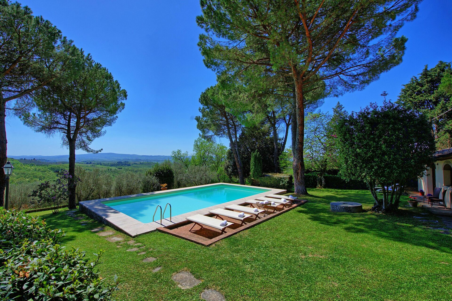 Distances:le petit village de Sciano avec magasin alimentaire et restaurant à env. 5,5 km, Barberino Val d’Elsa avec magasins variés et tennis à 6 km, Certaldo à env. 6 km, San Gimignano avec ses fameuses tours médiévales à env. 30 km, Florence à 38 km. Sienne et Volterra se trouvent dans un rayon de 30 km. Dans les alentours, le caractéristique petit village de Petrognano, derniers vestiges de la ville Semifonte, détruite en 1202 par les Florentins. Des attestations sont encore visibles dans la région. A visiter également les bourgs médiévaux de San Appiano avec son petit musée et Linari.