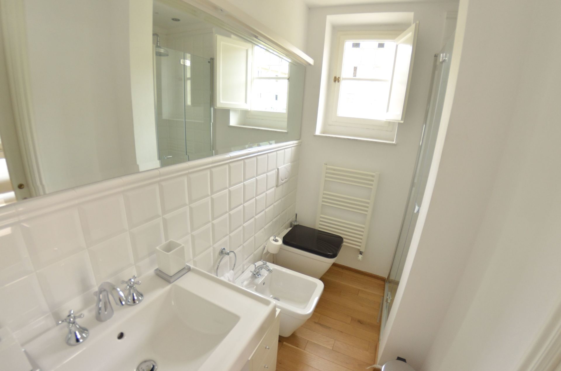 chambre avec salle de bain 1: lit double, climatisation, bassin, wc, bidet, douche.