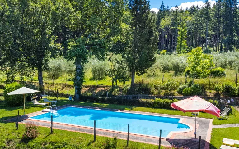 Nichée dans la campagne vallonnée de la Toscane à Pelago, en Italie, Certina est une location de vacances captivante qui invite les hôtes à découvrir la tranquillité d'une retraite rurale d'exception. La propriété se compose de 2 bâtiments distincts : la résidence du propriétaire et une deuxième structure abritant 4 appartements indépendants, tous situés dans un paysage naturel à couper le souffle. Perchée à 510 mètres d'altitude au sommet d'une colline, Certina bénéficie d'une position sereine et panoramique qui offre à la fois l'isolement et la beauté. Le domaine est entouré d'un généreux jardin de 33 hectares, où les sapins, les pins, les oliviers et les châtaigniers créent un cadre naturel luxuriant et varié. Une charmante cour en pierre ajoute du caractère à la propriété, tandis que la forêt environnante offre des sentiers pittoresques idéaux pour des promenades tranquilles ou des aventures en vélo de montagne. Les hôtes ont également accès à une piscine clôturée mesurant 6 x 12 mètres, avec une profondeur variant de 130 à 160 cm, disponible de manière saisonnière du 6 mai au 23 septembre, ce qui en fait une merveilleuse attraction pour les séjours en période estivale.