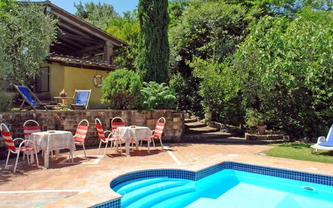 Les espaces extérieurs de Podere Rasenna sont conçus avec soin pour tirer le meilleur parti de la situation panoramique de la propriété en montagne. Le jardin privé est vaste et magnifiquement entretenu, combinant une pelouse bien soignée et un jardin naturel plus sauvage qui reflète la campagne toscane authentique entourant le domaine. Au cœur de l'espace vert, la piscine mesurant 5 x 12 mètres, avec une profondeur de 120 à 150 cm, est ouverte de manière saisonnière du 19 avril au 04 octobre et est complétée par une terrasse ensoleillée dédiée où les hôtes peuvent se détendre et profiter de la chaleur du soleil toscan. Une douche extérieure et un vestiaire avec WC sont commodément situés à proximité de la piscine, et des serviettes de bain sont mises à disposition des hôtes. Une pergola offre un refuge ombragé au sein du jardin, tandis qu'une grande véranda meublée constitue un cadre idéal pour les repas en plein air, permettant aux hôtes de savourer les repas dans l'air frais de la campagne. Du mobilier de jardin et un barbecue complètent les équipements extérieurs, rendant l'extérieur de la propriété parfaitement adapté aux après-midi de détente et aux soirées conviviales sous le ciel toscan.