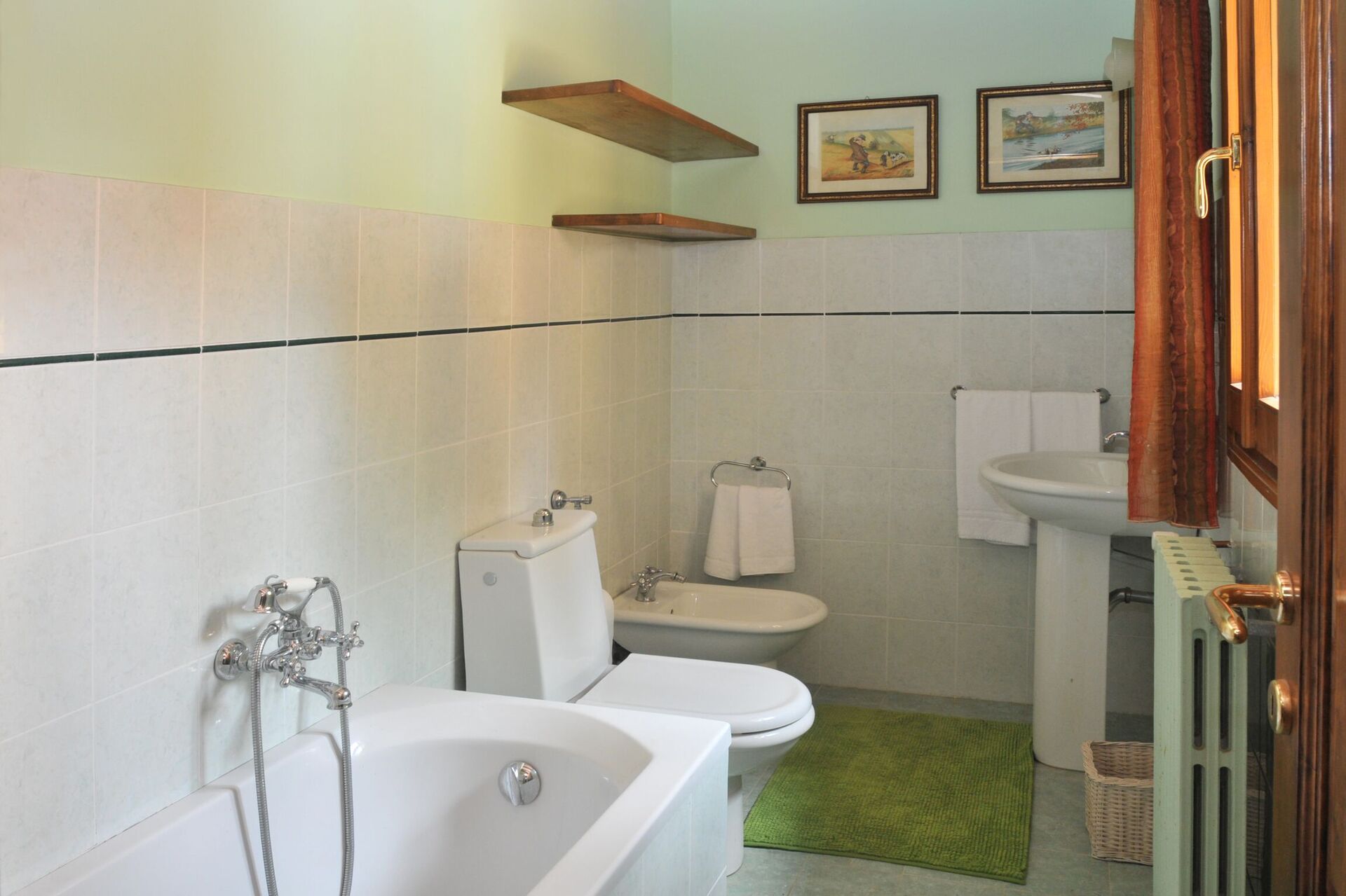 chambre avec salle de bain: lit double, wc, bidet, bagnoire, sèche-cheveux.