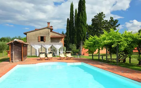 Ferme située à 3 km de Loro Ciuffenna en position centrale, aux pieds du Pratomagno. La ferme agricole toujours en activitée, comprend 5 hectares de vignes anciennes et de différents cépages, d'oliviers, d'arbres fruitiers et légumes. La ferme est divisée en 2 parties indépendantes. Notre location est l'une d'entre elles. Grands espaces extérieurs. Chauffage à poële. Bois à régler selon consommation.Parking. Ancienne ferme ancienne "Campolacconi", rénovée, environnée par les champs. À 3 km du centre de Loro Ciuffenna. En commun: terrain 5 ha, verger. A usage privé: piscine (6 x 14 m, profondeur 120 - 150 cm, disponibilité saisonnière: 02.Mai. - 10.Oct.) avec marches intérieures. Douche extérieure, jardinet, meubles de jardin, barbecue. Infrastructures de la Maison: avec TV, lave-linge. Accès en voiture (1.8 km chemin non goudronné). Magasins 3 km, arrêt du bus 2 km, gare ferroviaire "Montevarchi" 10 km, centre thermal "Rapolano" 55 km. Terrain de golf 30 km, tennis 3 km, centre équestre 5 km. Attractions à proximité: Gaiole in Chianti 30 km, Greve in Chianti 38 km, Arezzo 42 km, Siena 55 km, Firenze 55 km.