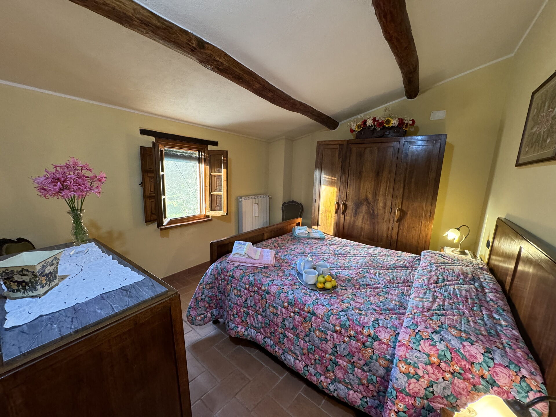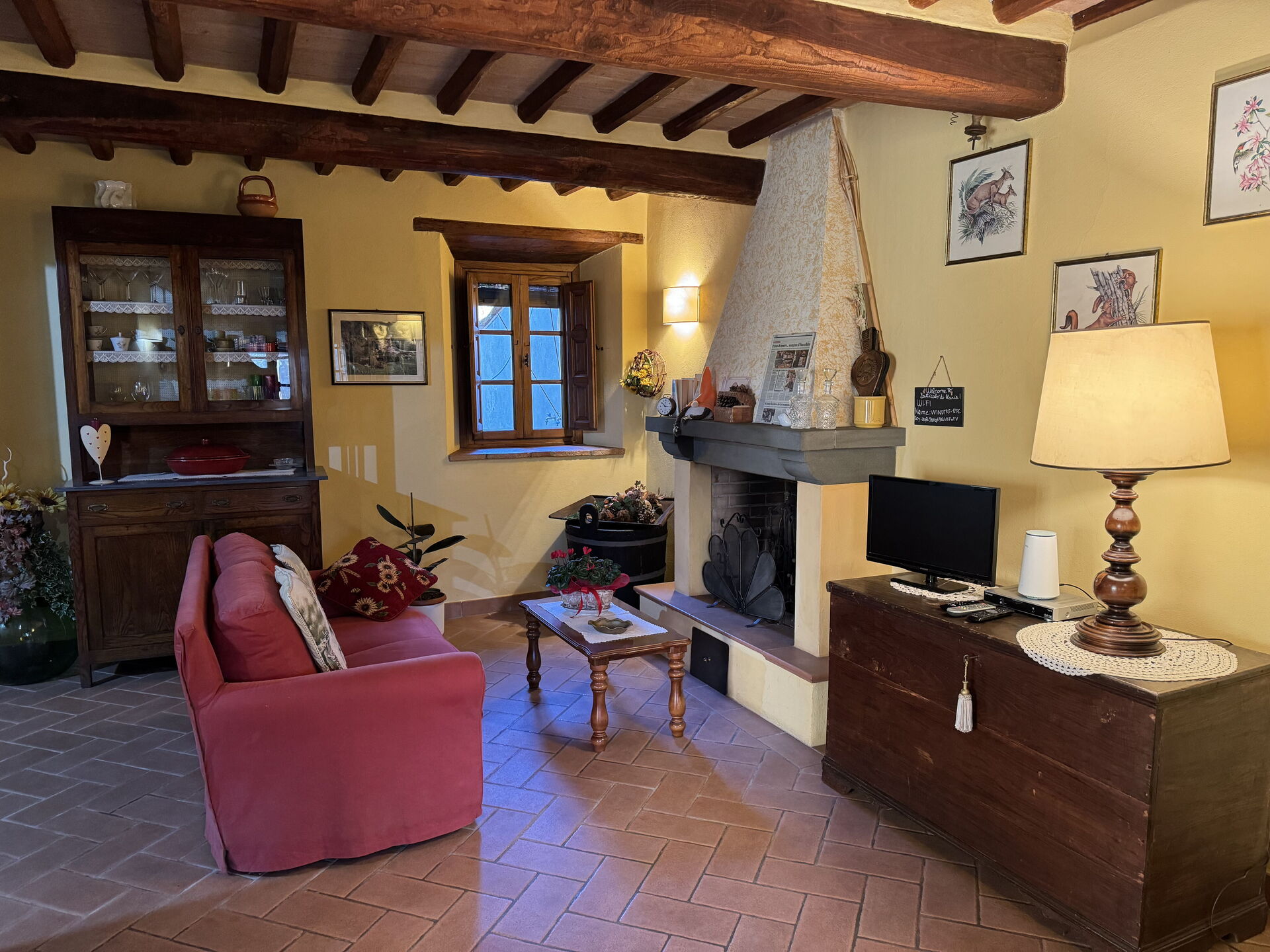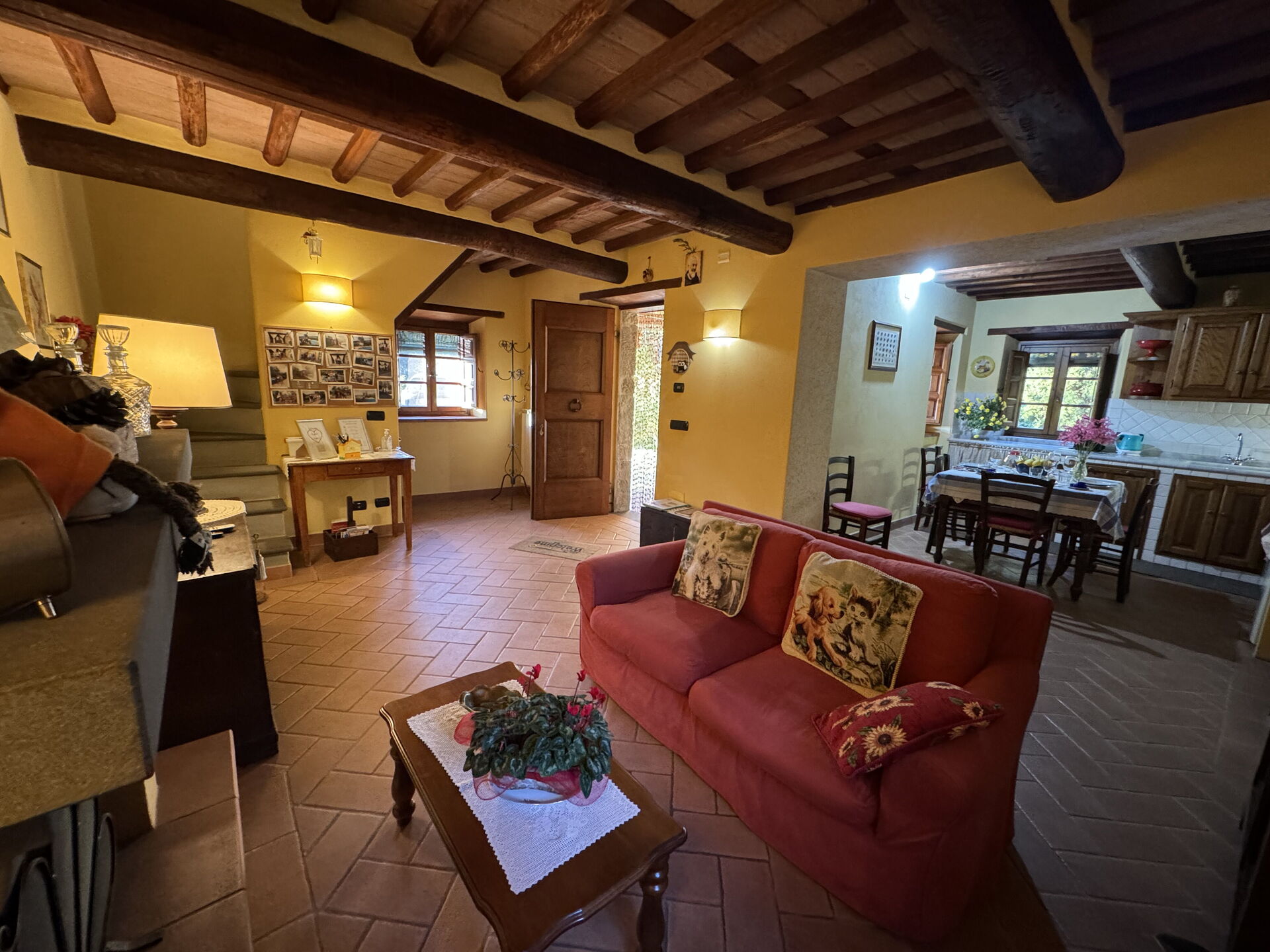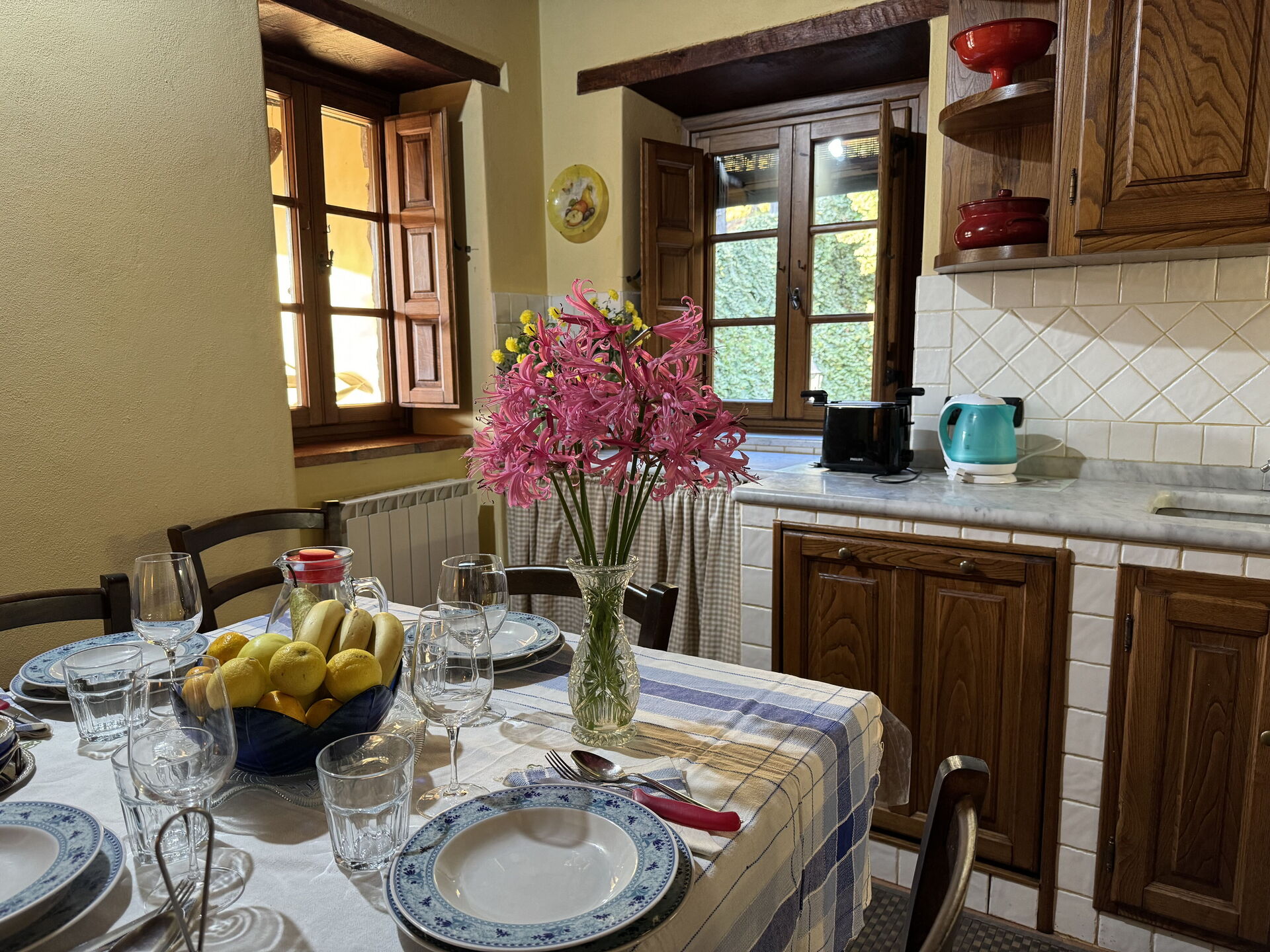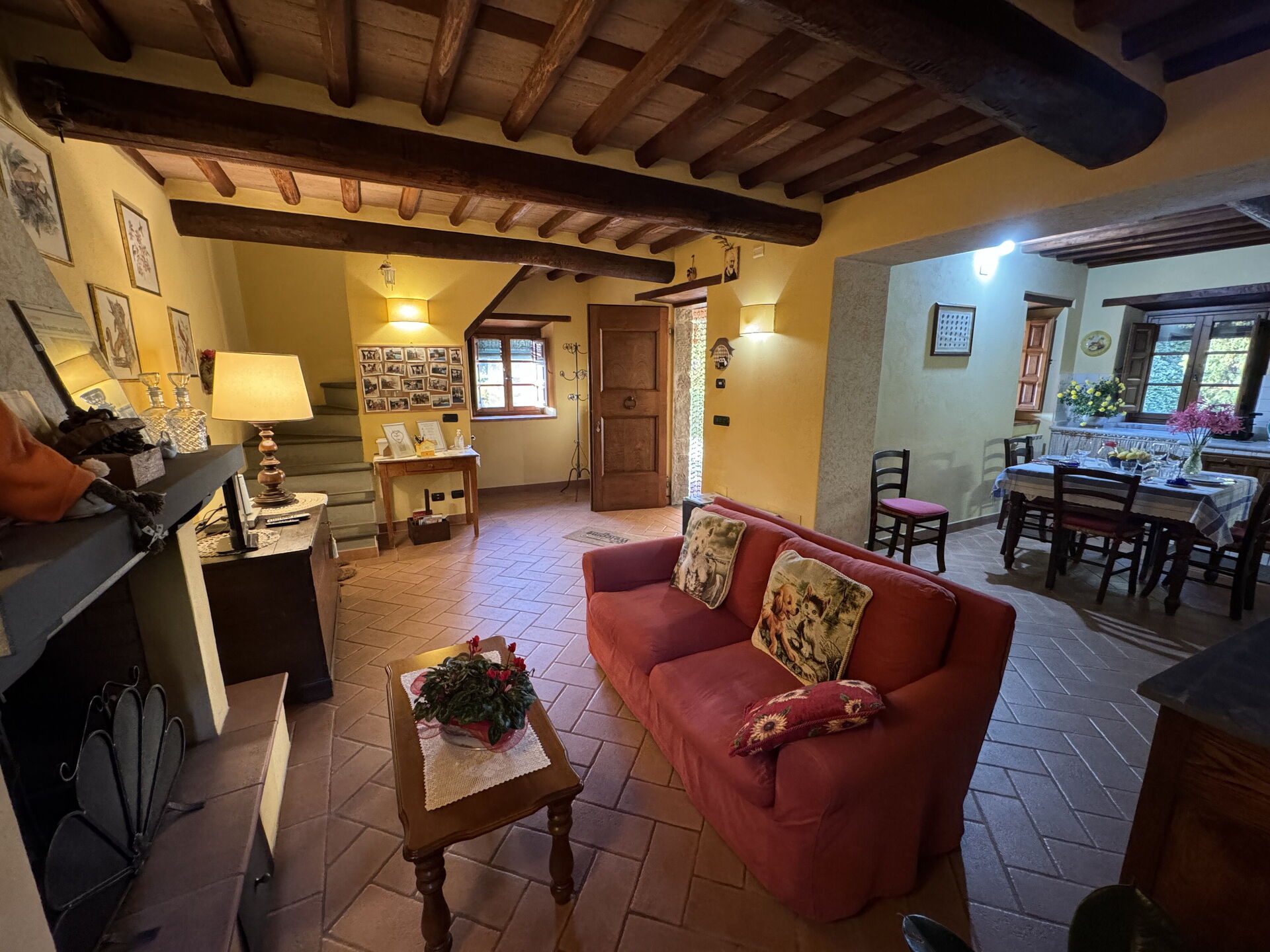 à l'arrivée à Batticapo di Ilaria vous trouverez une jolie propriété, propre et bien entretenue, avec vue sur les collines idéale pour des relaxantes vacances en Toscane. Peu importe comment vous passez vos journées... visites de musées, visites, shopping ou tout simplement en vous baladant à la campagne, quand vous arrivez à la maison, vous pouvez vous détendre à la piscine avec votre famille et vos amis et conclure au mieux un autre jour de vacances en Toscane. Il y a une cuisine y compris machine à café, cuisinière et réfrigérateur, ainsi que, assez de vaisselle et couverts jusqu'à six personnes. Si vous préférez dîner «al fresco», il y a à votre disposition un jardin où vous pourrez profiter du beau temps tout en mangeant en plein air.