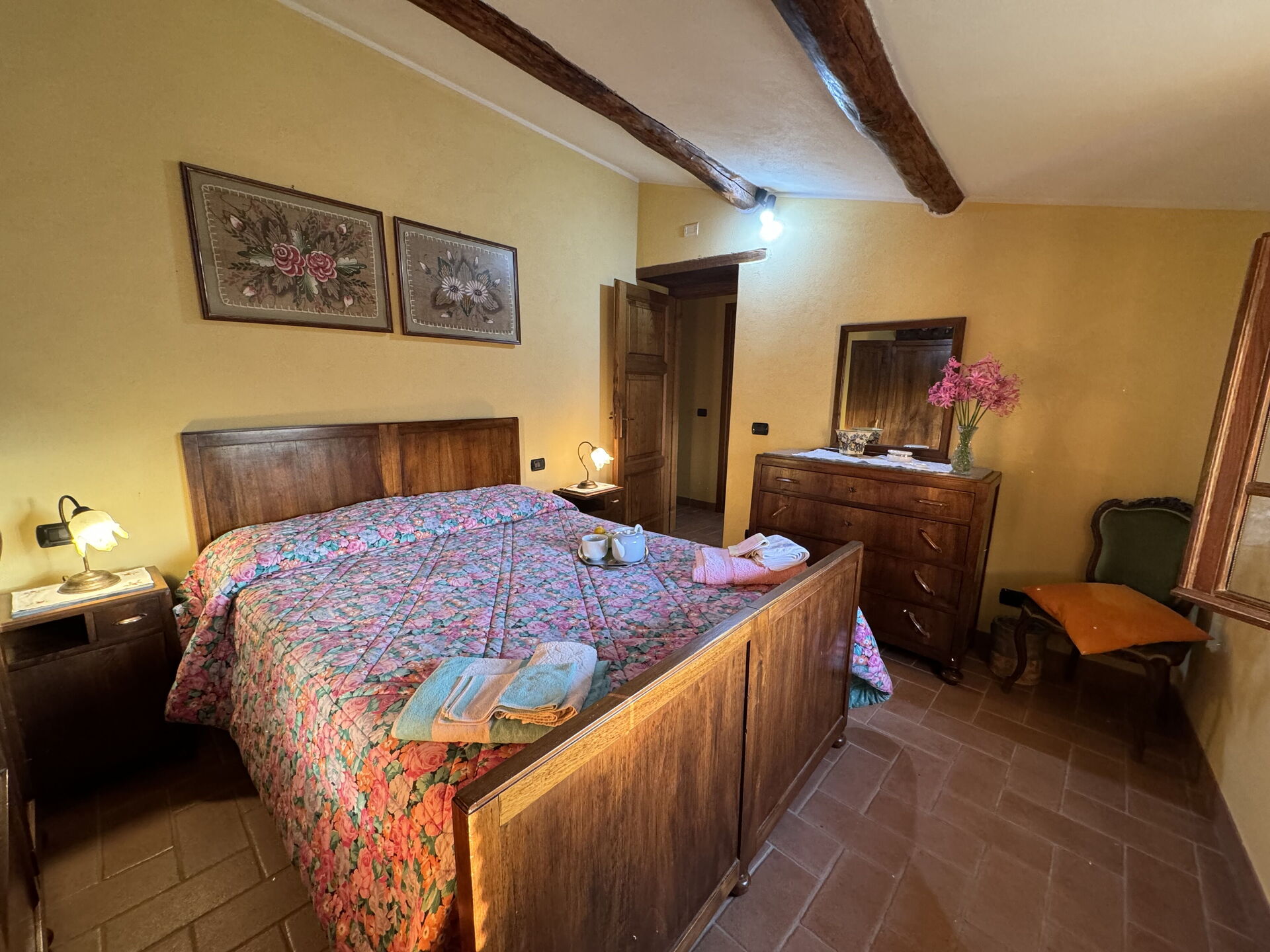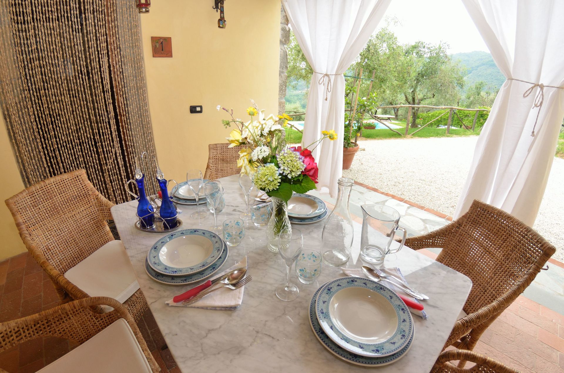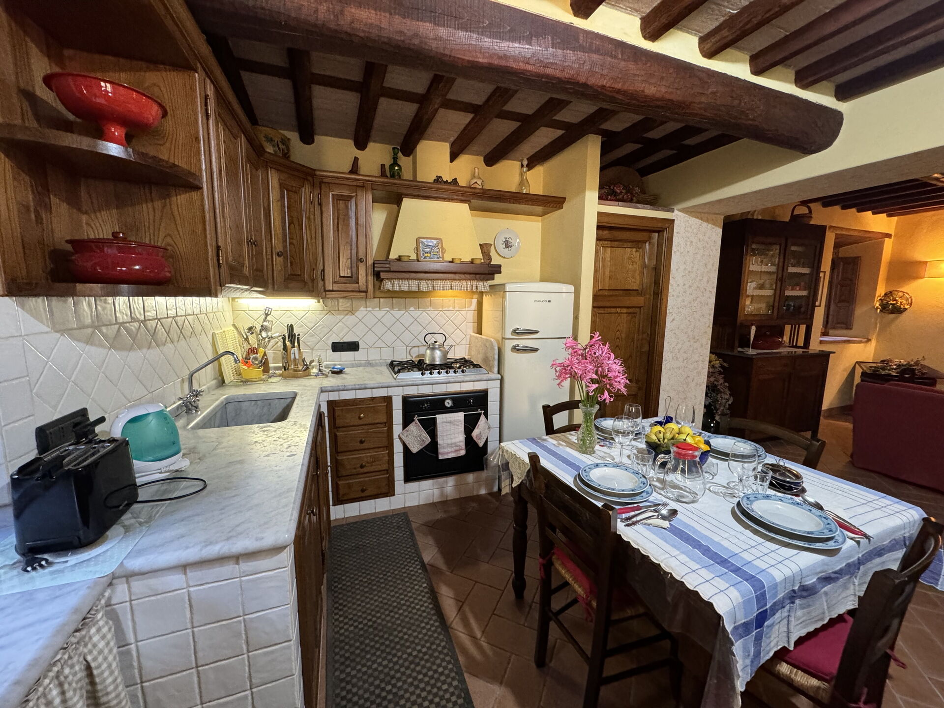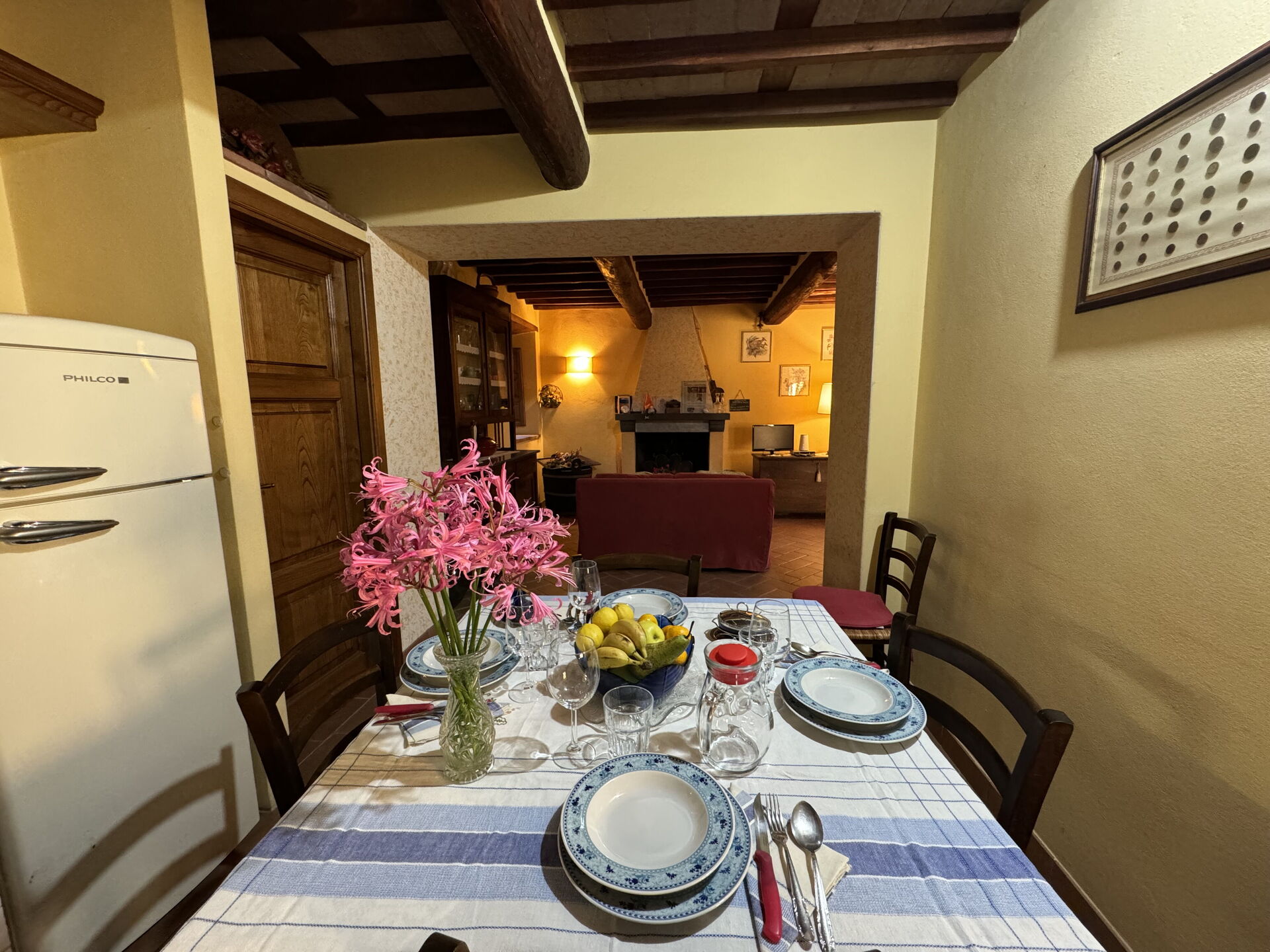 à l'arrivée à Batticapo di Ilaria vous trouverez une jolie propriété, propre et bien entretenue, avec vue sur les collines idéale pour des relaxantes vacances en Toscane. Peu importe comment vous passez vos journées... visites de musées, visites, shopping ou tout simplement en vous baladant à la campagne, quand vous arrivez à la maison, vous pouvez vous détendre à la piscine avec votre famille et vos amis et conclure au mieux un autre jour de vacances en Toscane. Il y a une cuisine y compris machine à café, cuisinière et réfrigérateur, ainsi que, assez de vaisselle et couverts jusqu'à six personnes. Si vous préférez dîner «al fresco», il y a à votre disposition un jardin où vous pourrez profiter du beau temps tout en mangeant en plein air.
