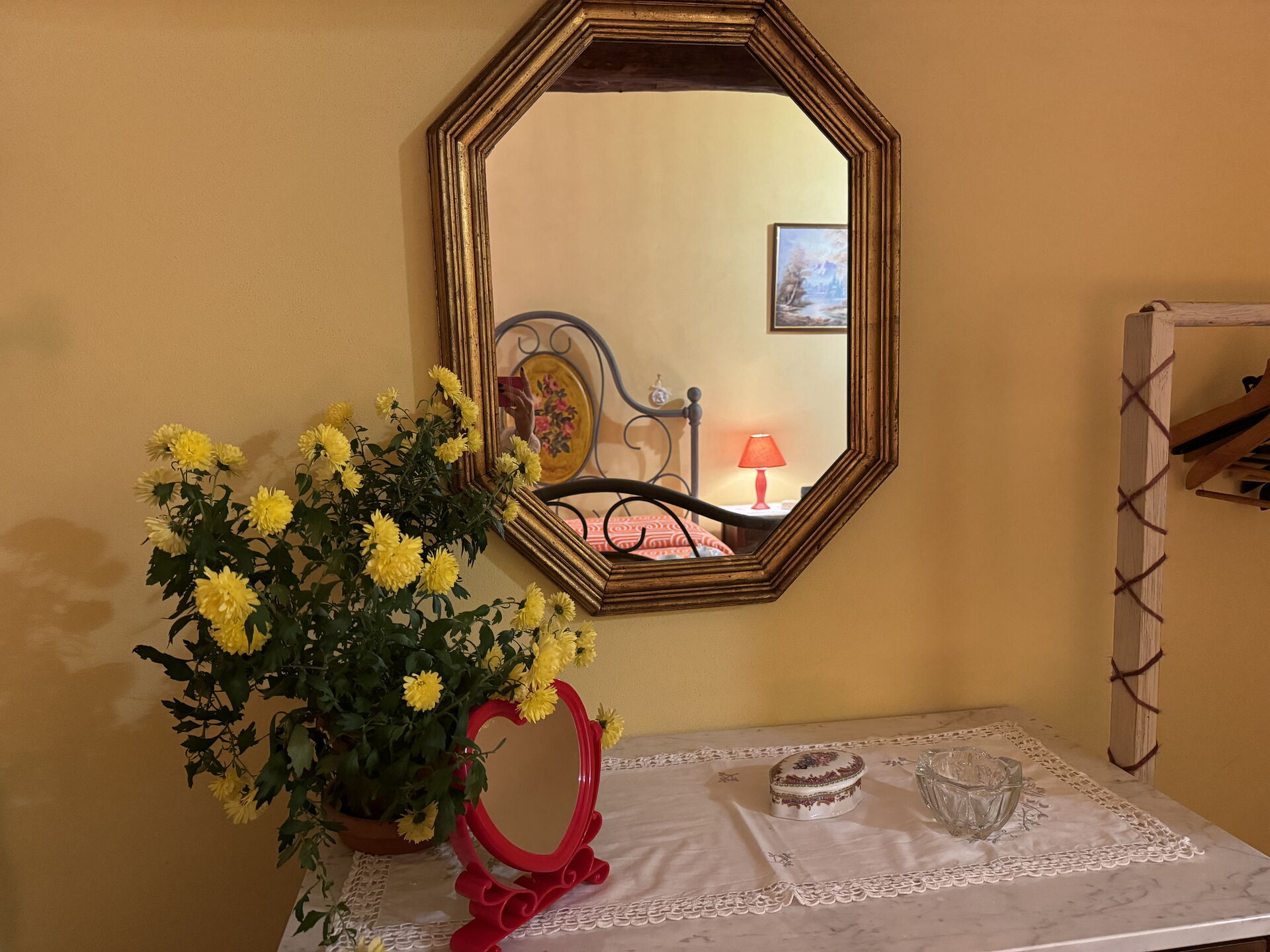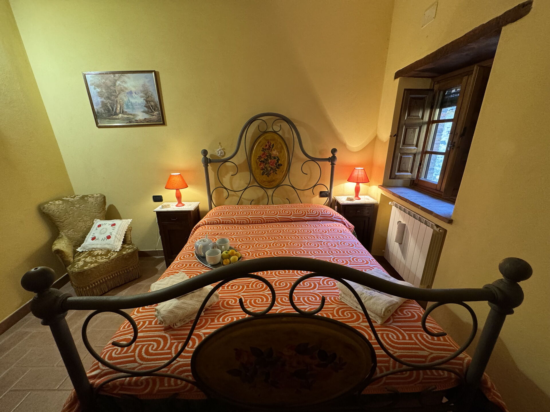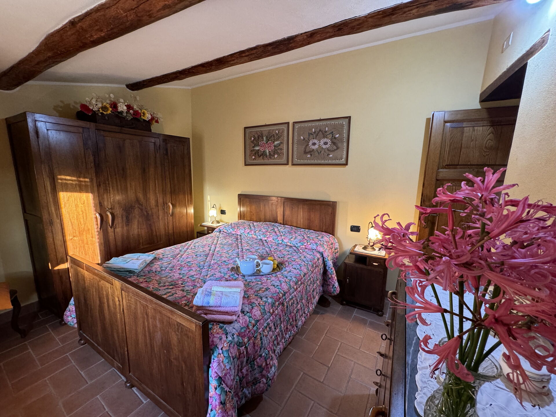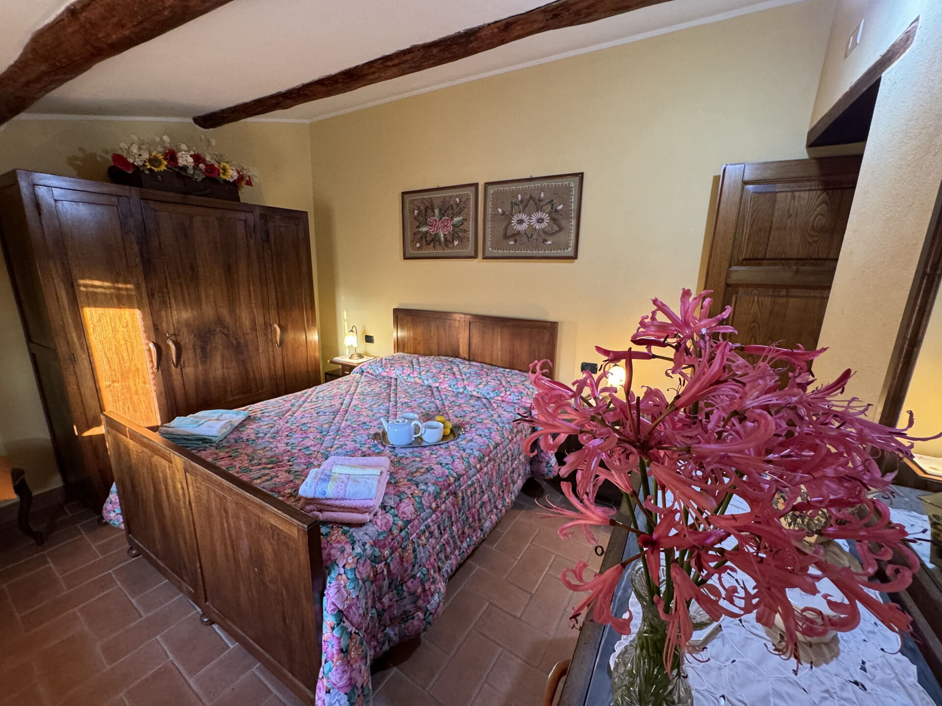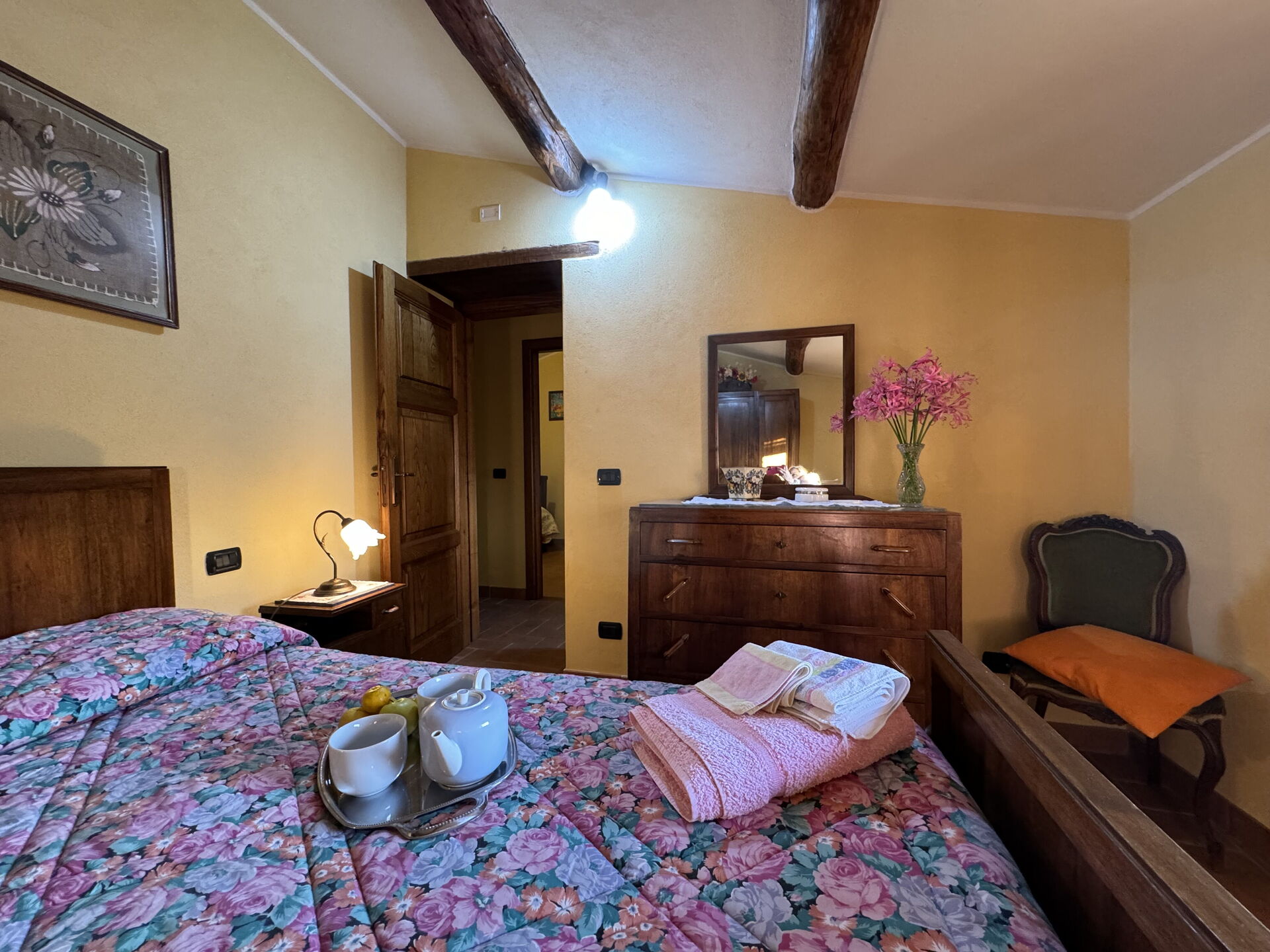 à l'arrivée à Batticapo di Ilaria vous trouverez une jolie propriété, propre et bien entretenue, avec vue sur les collines idéale pour des relaxantes vacances en Toscane. Peu importe comment vous passez vos journées... visites de musées, visites, shopping ou tout simplement en vous baladant à la campagne, quand vous arrivez à la maison, vous pouvez vous détendre à la piscine avec votre famille et vos amis et conclure au mieux un autre jour de vacances en Toscane. Il y a une cuisine y compris machine à café, cuisinière et réfrigérateur, ainsi que, assez de vaisselle et couverts jusqu'à six personnes. Si vous préférez dîner «al fresco», il y a à votre disposition un jardin où vous pourrez profiter du beau temps tout en mangeant en plein air.