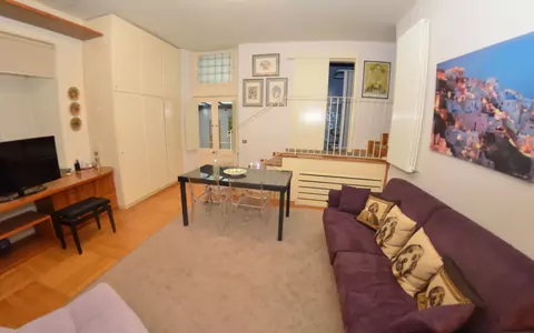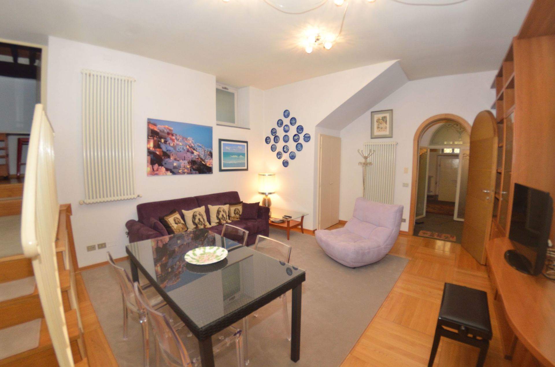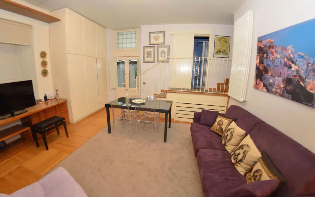 Salon: table à manger (personnes: 3), canapé-lit double, télévision.