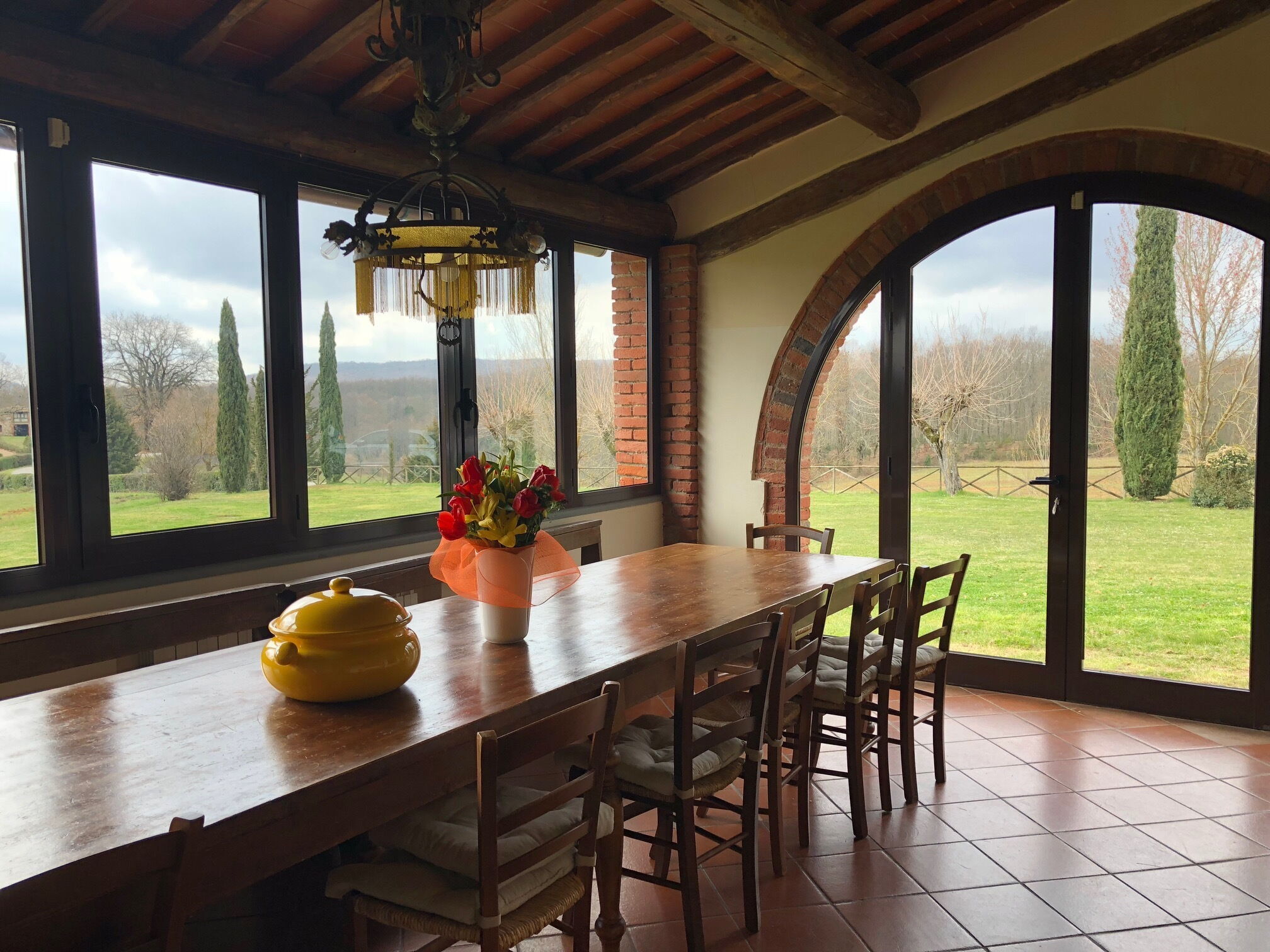 à l'arrivée vous serez accueillis par le propriétaire, ou une personne de sa confiance, et vous trouverez une jolie propriété, propre et bien entretenue, avec vue sur les collines parfaite pour des vacances tranquilles en Toscane. Peu importe comment vous passez vos journées... shopping, visites, visites de musées ou tout simplement en vous baladant à la campagne, quand vous arrivez à la maison, vous pouvez vous délasser à la piscine avec votre famille et vos amis et conclure au mieux un autre jour de vacances en Toscane. Pour votre plaisir, sur le terrain il y a un barbecue et une véranda. Dîner avec les amis et la famille est une grande partie de la culture toscane. Profitez de la cuisine bien équipée pour préparer les repas avec des produits locaux pendant vos vacances. La cuisine comprend four micro-onde, grille-pain et réfrigérateur, ainsi que, abondance de vaisselle et couverts pour un maximum de 24 personnes. Dînez «al fresco» comme un vrai toscan, la véranda complètement équipée est le cadre idéal pour apprécier la cuisine, s'amuser en famille, et profiter du jolie beau temps toscan.