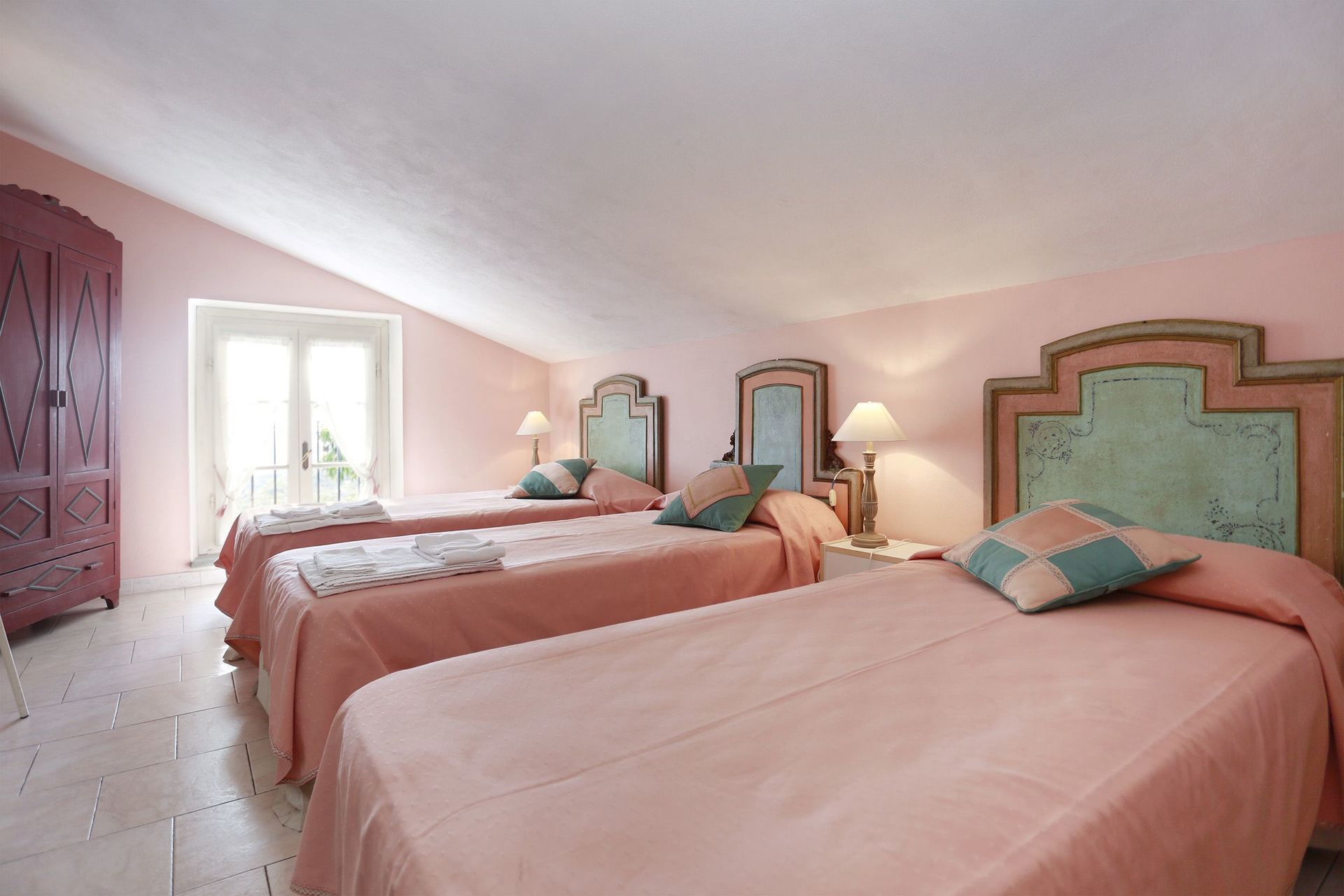 chambre à coucher: trois lits à une place, climatisation.