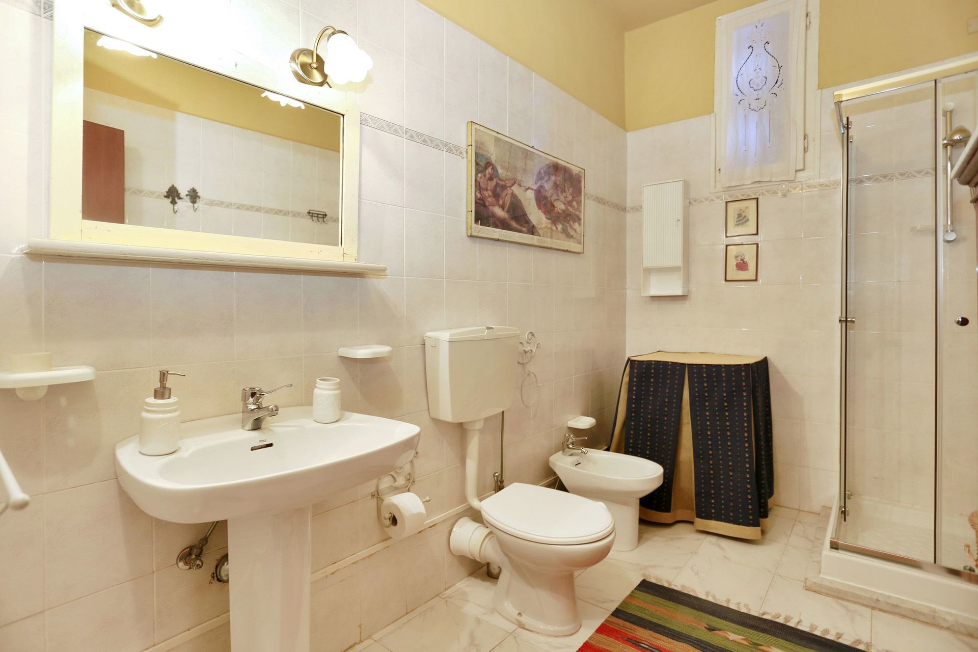 salle de bain: bassin, wc, bidet, douche.