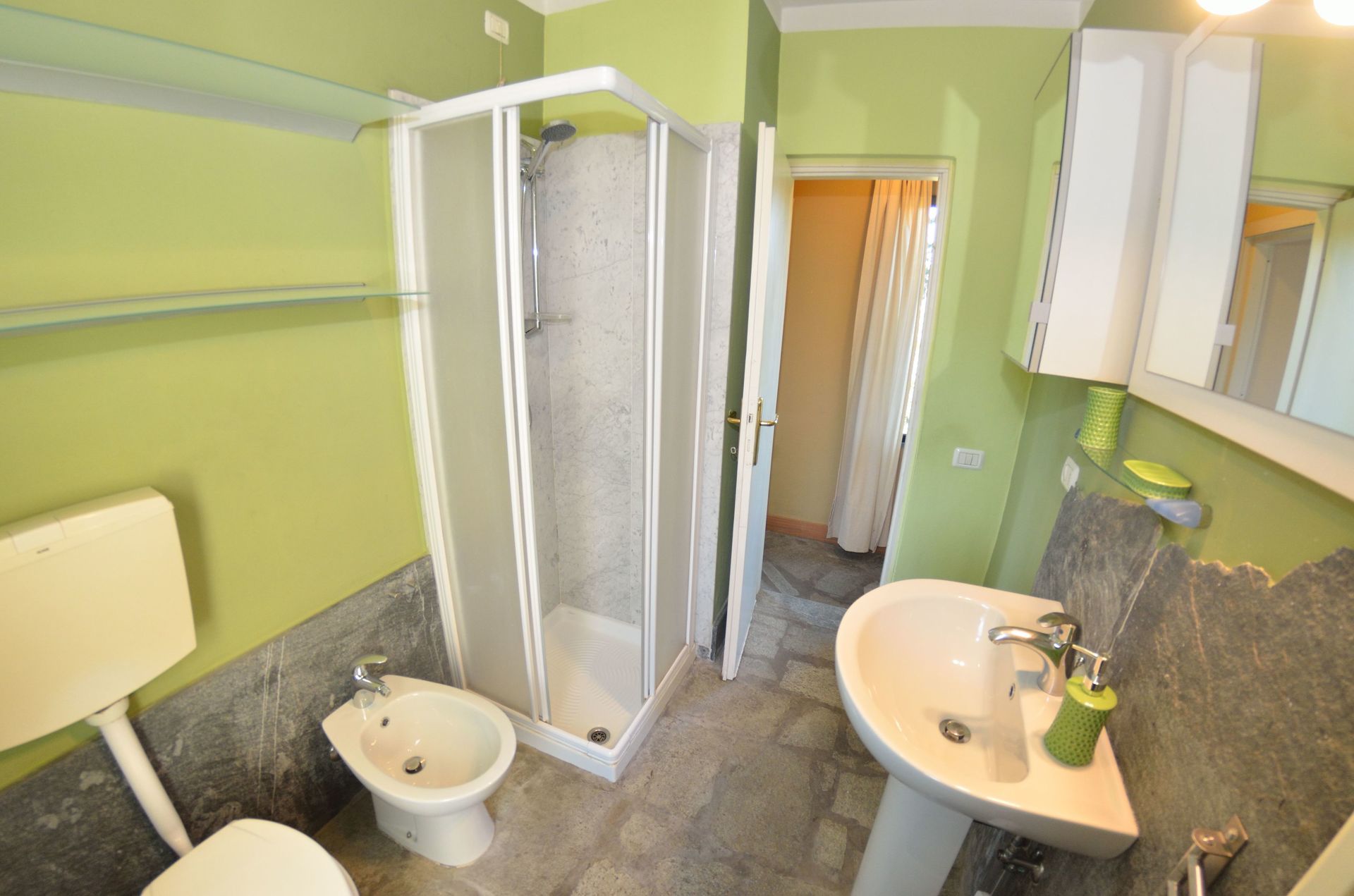 salle de bain: bassin, wc, bidet, douche.