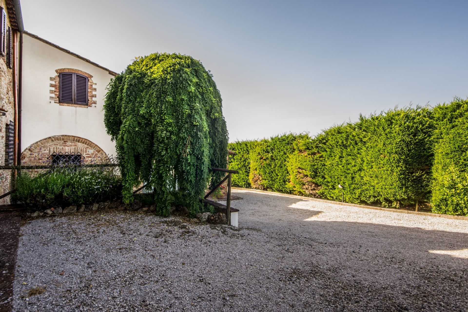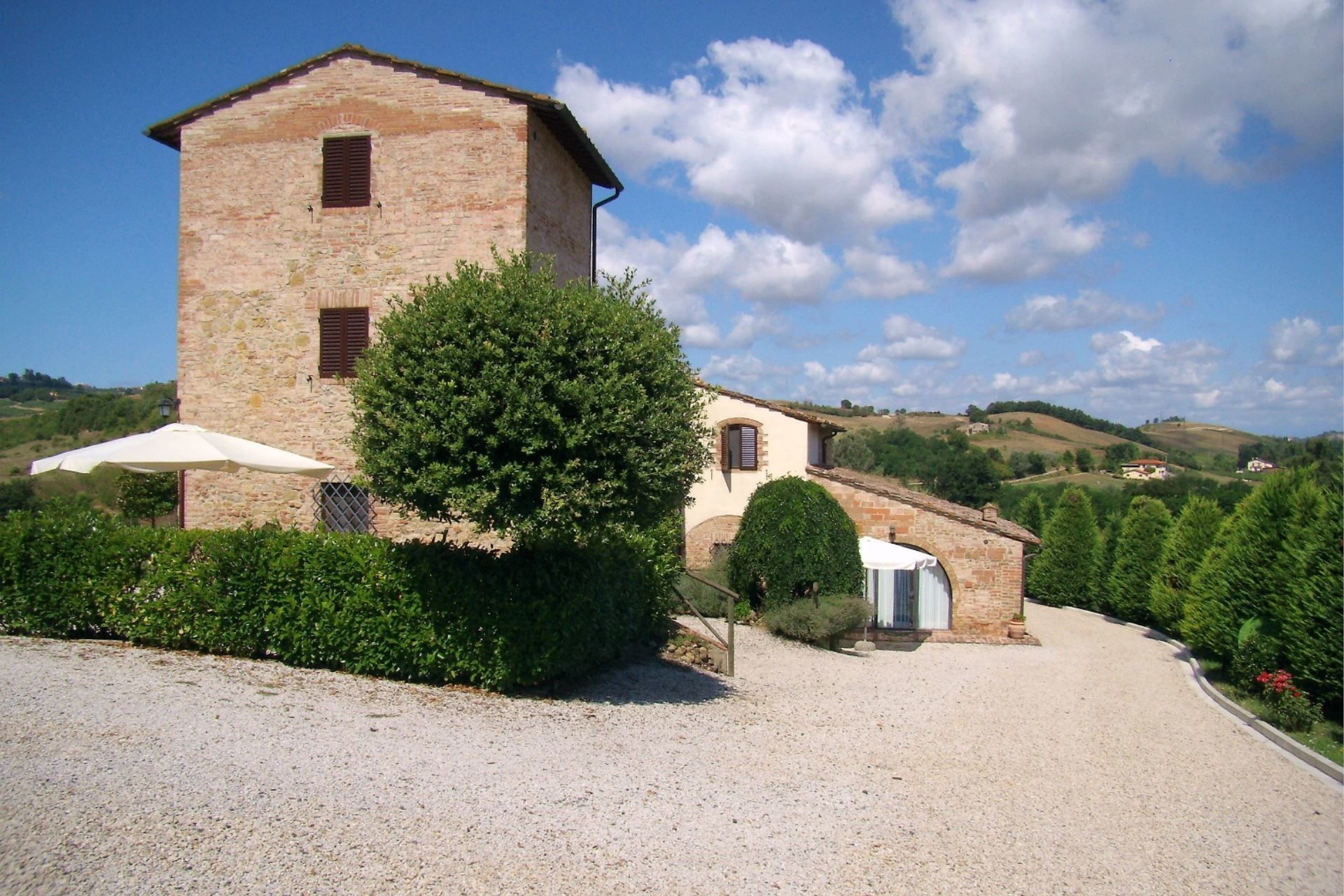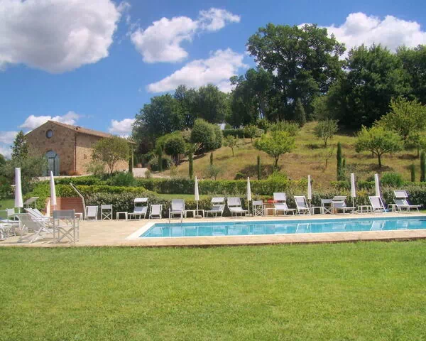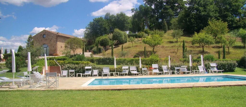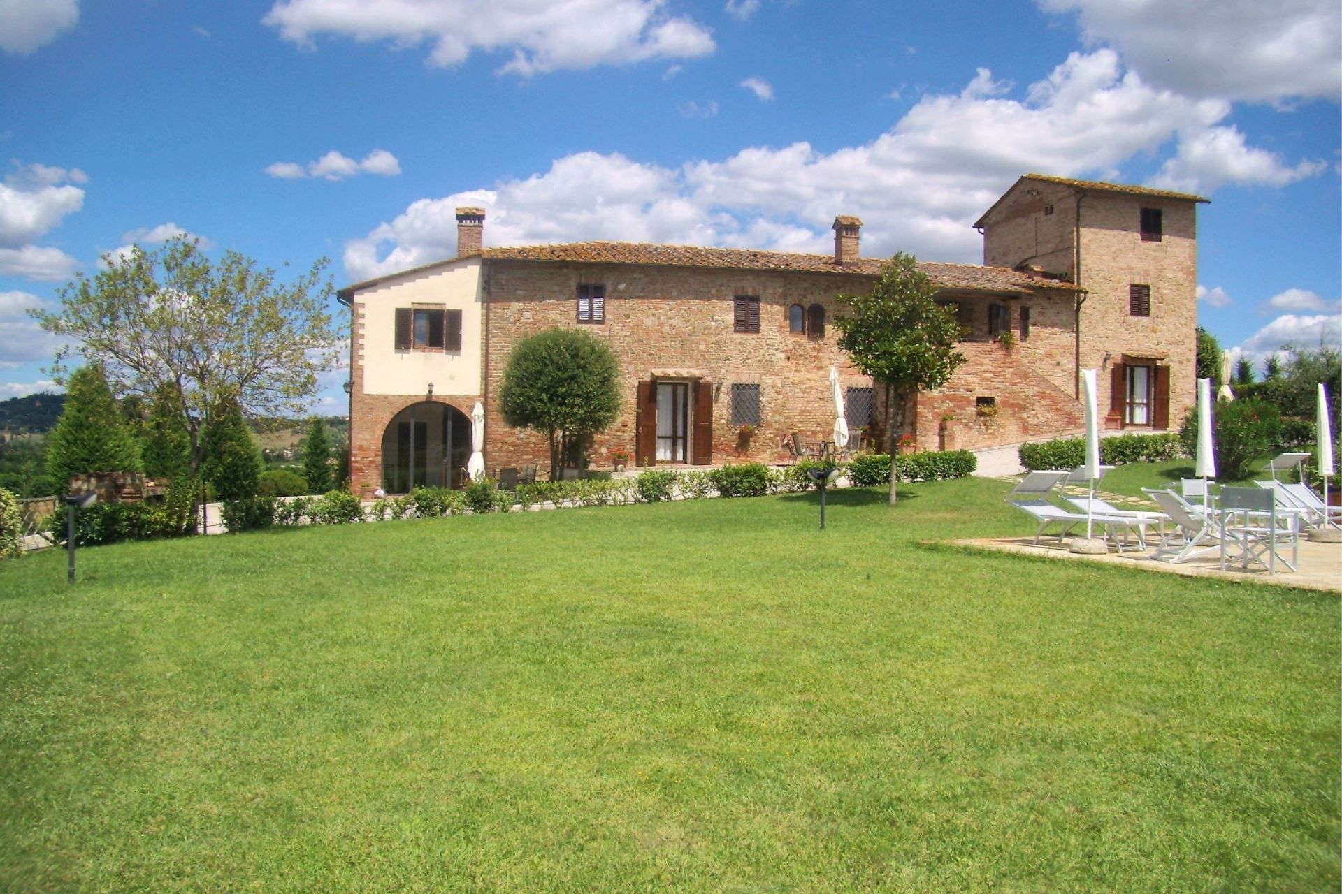 La tour ancienne et la ferme rénovée. Caselsa, dont le nom dérive du fleuve Elsa qui coule dans la vallée, constituait la dernière maison, au nord d'une grande ferme, et consistait en une seule 'Tour' construite spécialement pour repérer l'approche de tout étranger. La structure a été entièrement rénovée en 1992 et divisée en 5 appartements, chacun équipé de tout le confort moderne (climatisation, Wi-Fi, lave-vaisselle, lave-linge, etc...) et dans le grand jardin clos a été construite la piscine (taille 6x12 mt., profondeur 1,40 mt.), et un espace extérieur équipé avec table et chaises pour dîner en plein air.