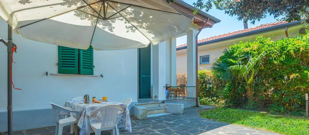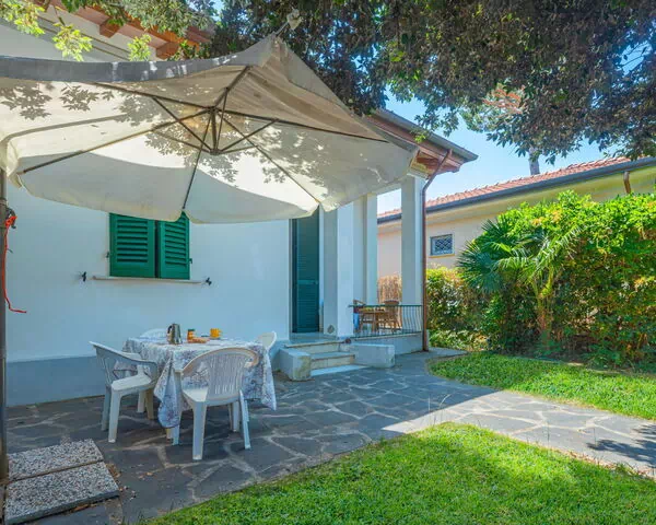 Nichée dans le quartier résidentiel tranquille de Tonfano, la villa « Anita » est une charmante maison de vacances individuelle située à proximité du cœur de Marina di Pietrasanta, en Toscane. La propriété est entièrement clôturée, garantissant l'intimité absolue et un environnement sécurisé. Le terrain, entouré d'arbres matures, crée une atmosphère naturellement ombragée et intime qui renforce le sentiment de seclusion et de détente. Cette maison de vacances allie la sérénité d'un cadre verdoyant à la proximité de la mer et des commodités locales.