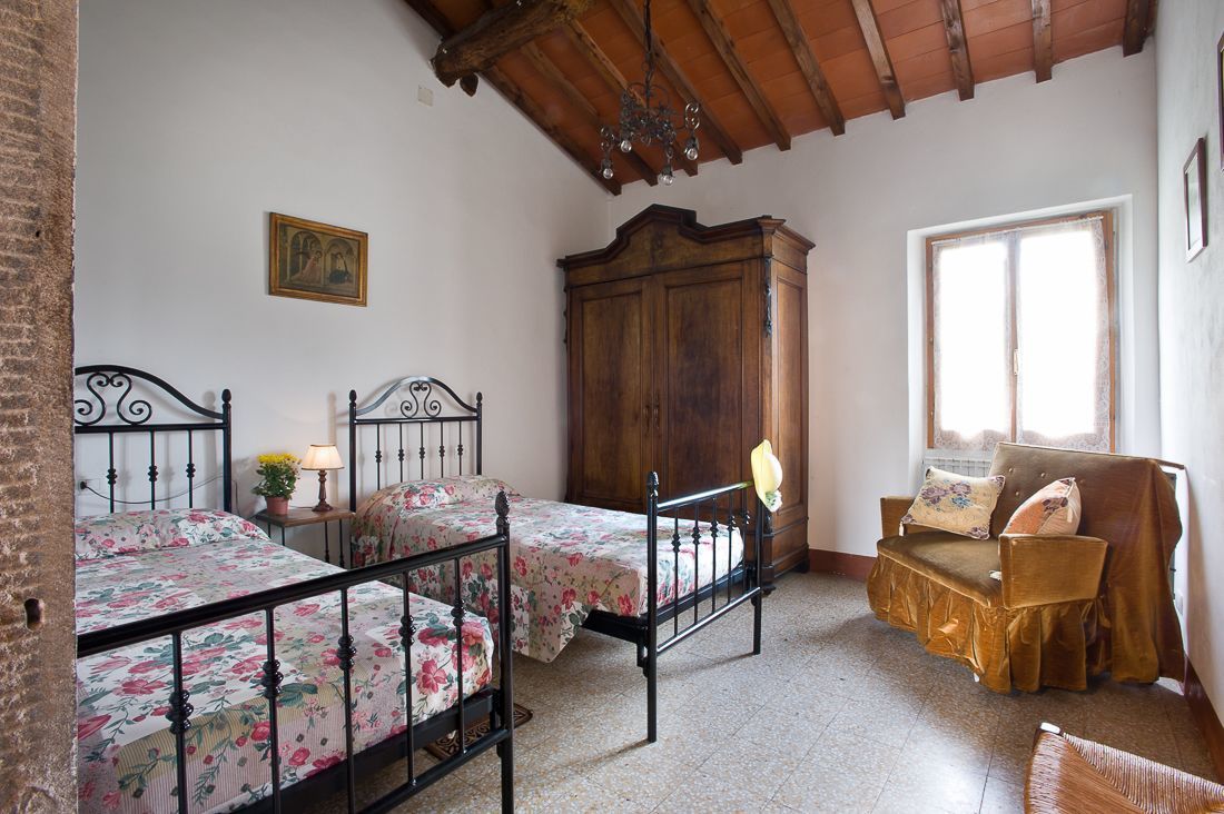 The two large bedrooms overlook the surrounding countryside of the farmhouse, for a real Tuscan experience and a very peaceful rest. Bathroom with shower and laundry facilities.