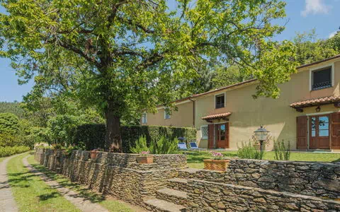La maison « Di Carlino » est une maison de vacances semi-mitoyenne implantée en position surélevée sur un versant à 250 mètres d'altitude, dans la campagne tranquille de Pietrasanta, en Italie. Entourée d'arbres luxuriants et de vignobles, elle offre une retraite sereine et isolée. Située au-dessus du village de Strettoia, elle se trouve à 3 kilomètres de son centre et à 8,5 kilomètres du cœur de Pietrasanta, ce qui en fait une base idéale pour explorer la région tout en jouissant du calme de la vie rurale.