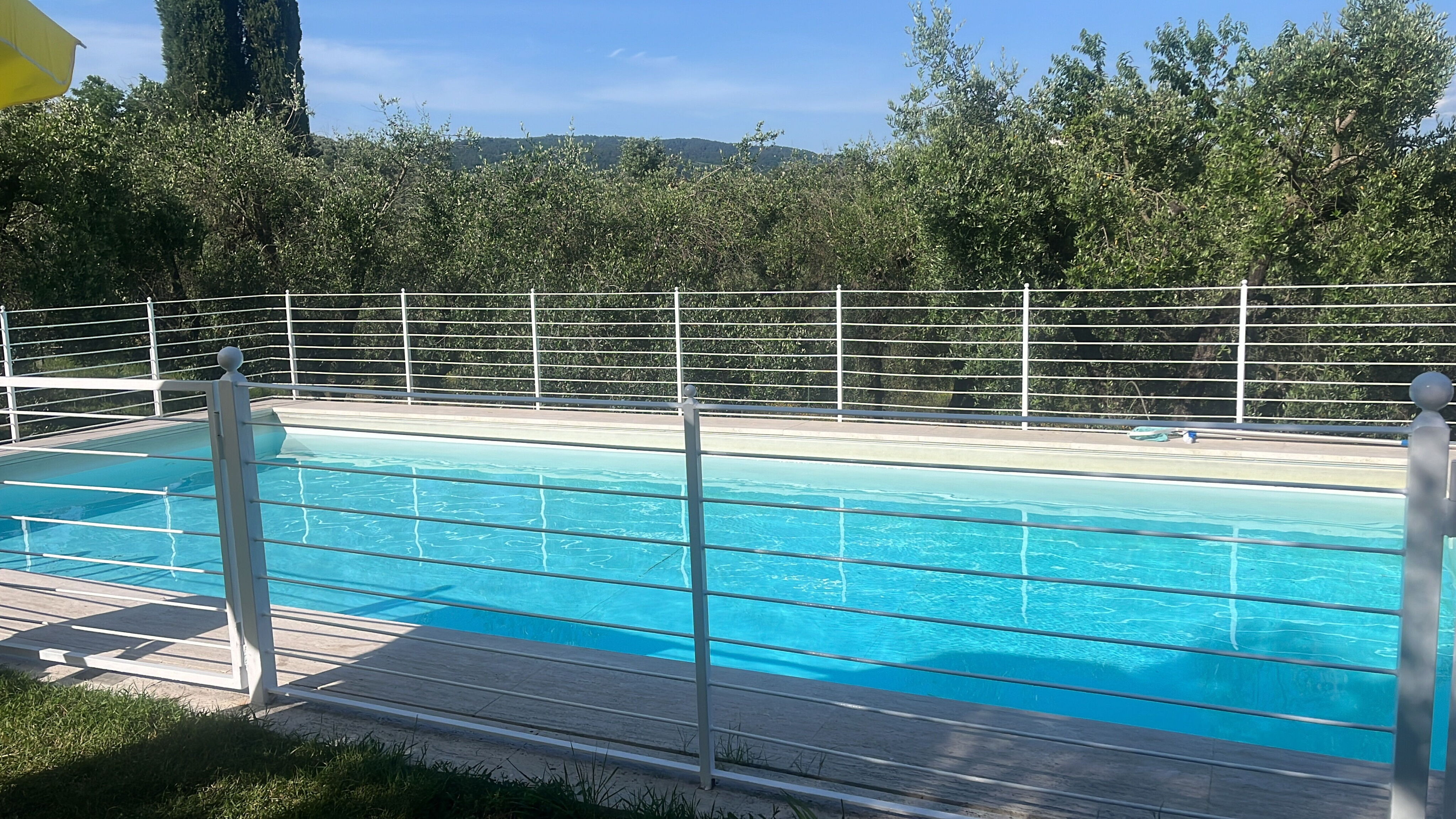 La piscine est entretenue par le propriétaire et le jardinier. Un parking sur place permet de garer 2 voitures. La propriété est accessible par une route étroite d'environ 1 kilomètre de longueur ; les hôtes sont invités à prendre soin lors de la navigation sur cet accès. La propriété donne accès à un sauna, un hammam et un bain hydromassant, tous disponibles moyennant supplément.