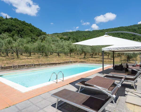 Perchée sur une colline ondulante à Londa, en Italie, la villa de vacances « Villa » est une propriété d'exception alliant isolement, beauté naturelle et confort moderne. Entourée de 5 hectares de terrain privé plantés d'arbres matures et d'un jardin naturel, elle offre des vues panoramiques spectaculaires sur la campagne toscane. La propriété est équipée de tous les équipements nécessaires pour un séjour confortable, dont une piscine généreuse aménagée dans un espace extérieur soigneusement entretenu.
