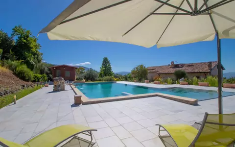 Nichée dans la campagne verdoyante d'Ombrie à Massa Martana, en Italie, à 350 mètres d'altitude, la villa « La Danza » est une propriété indépendante élégamment aménagée, entourée d'arbres et de champs ouverts. La villa est enveloppée par un parc privé entièrement clôturé de 2 hectares, offrant une intimité totale et un sentiment profond de seclusion au sein d'un paysage naturellement riche. Les hôtes ont accès à une piscine privée généreusement dimensionnée de 14 x 7 mètres, avec une profondeur variant de 140 à 250 cm, disponible du 1er mai au 30 septembre. Le jardin spacieux entourant la propriété est magnifiquement entretenu et conçu pour la détente et les loisirs en plein air.