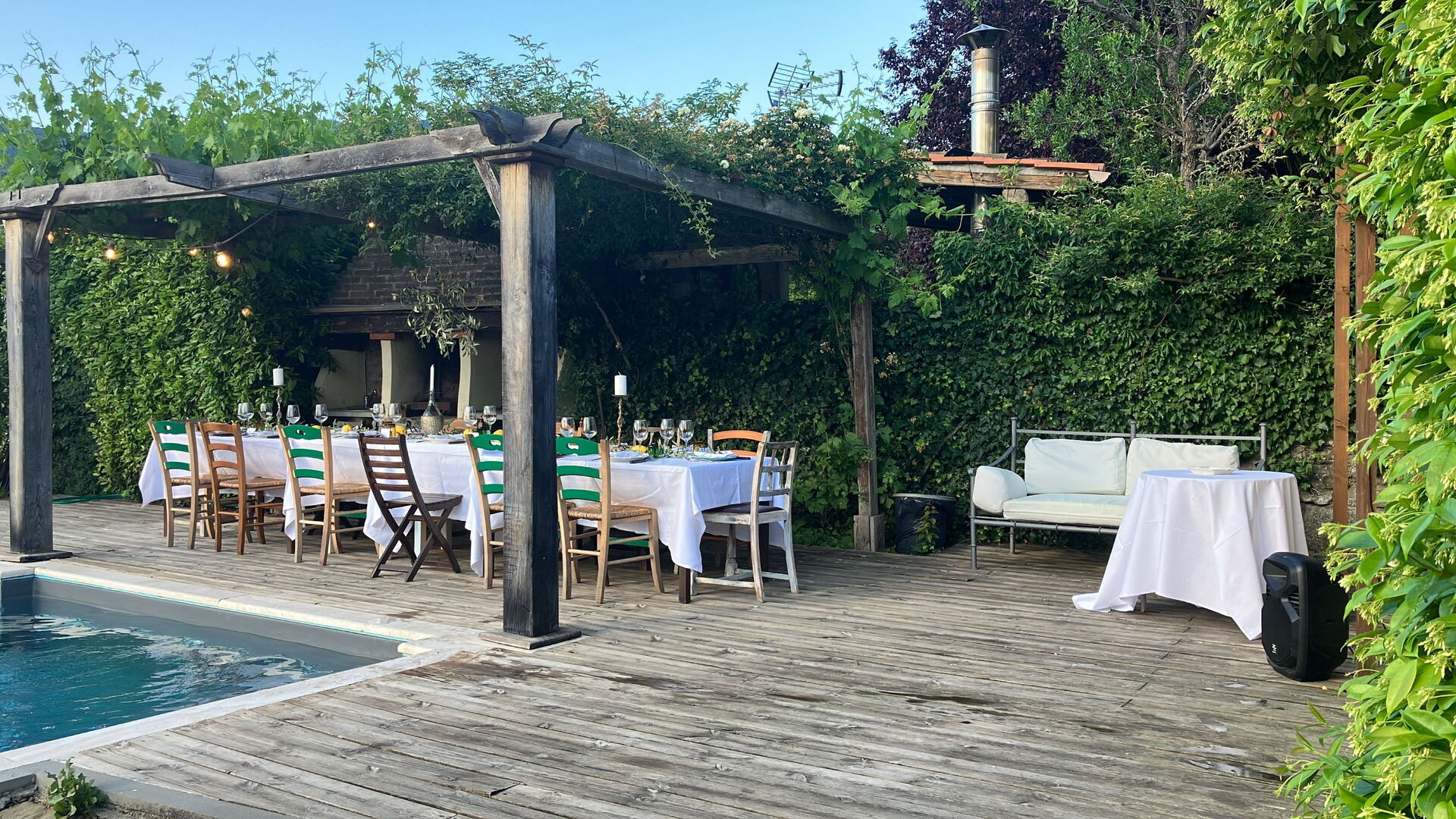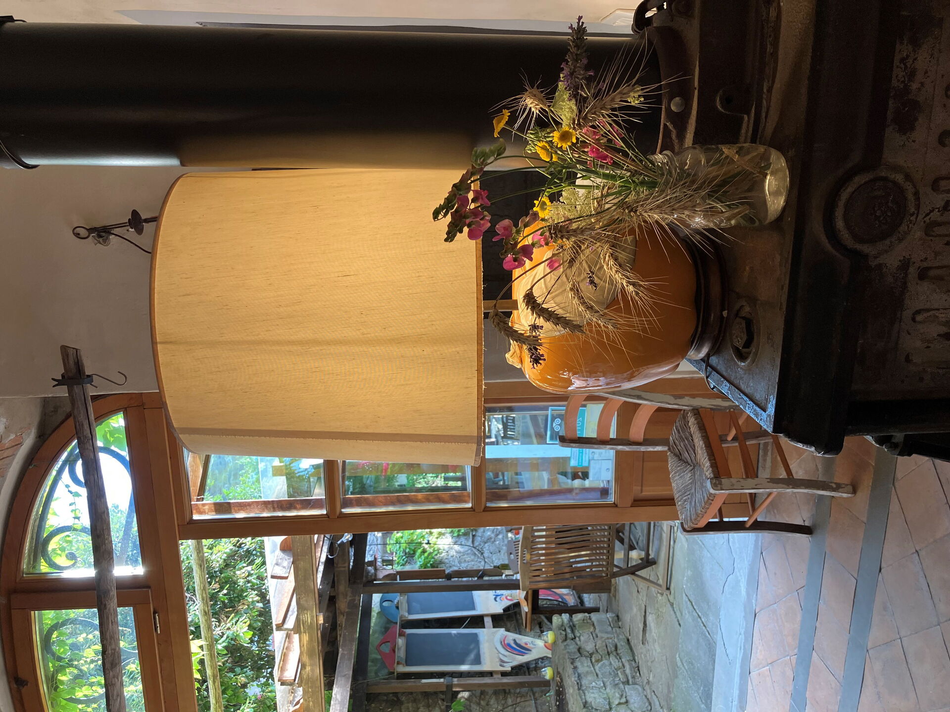salle à manger (27 m2): trois tables à manger (personnes: 21), fauteuil, internet WIFI, chaise-haute, ventilateur portable, chaine hifi, sortie sur la véranda.